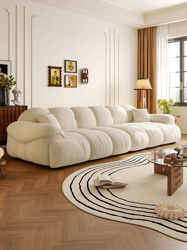 フランス風クリーム泡立てマシュマロソファー - おしゃれなリビングや小さなアパートにぴったり!人気のクラウドデザイン布製ソファで、居心地抜群。インスタ映え間違いなしの癒し空間を作りましょう!