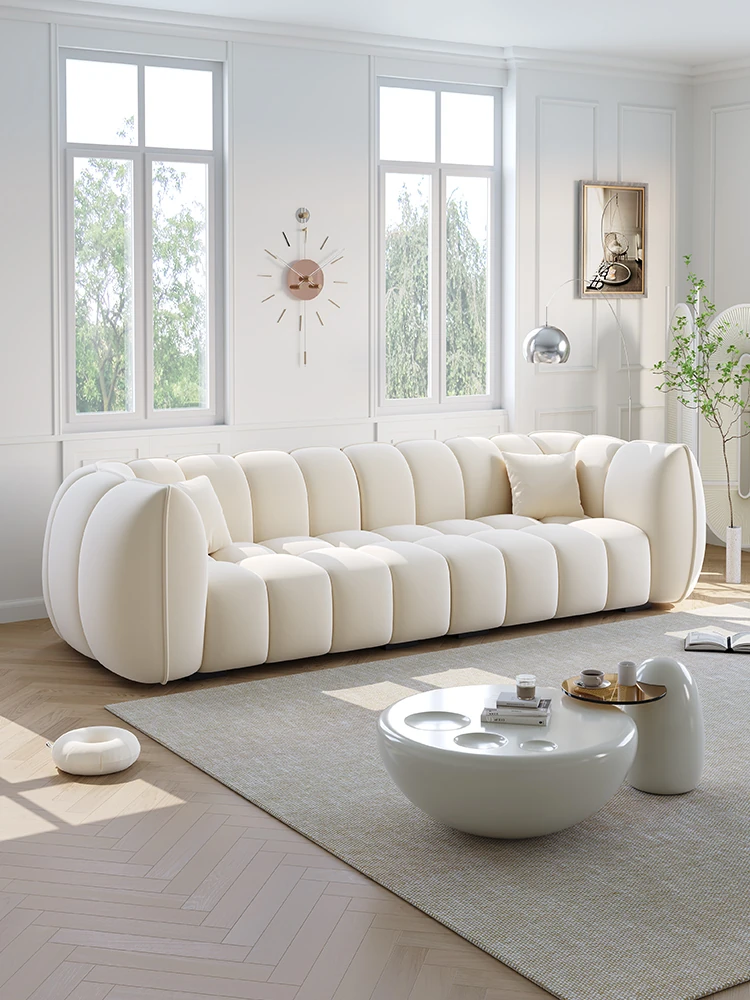フランス風クリーム泡立てマシュマロソファー|モダンミニマリスト小型リビング用ピアノキー直列ソファー|おしゃれで快適な空間を演出するデザイン!