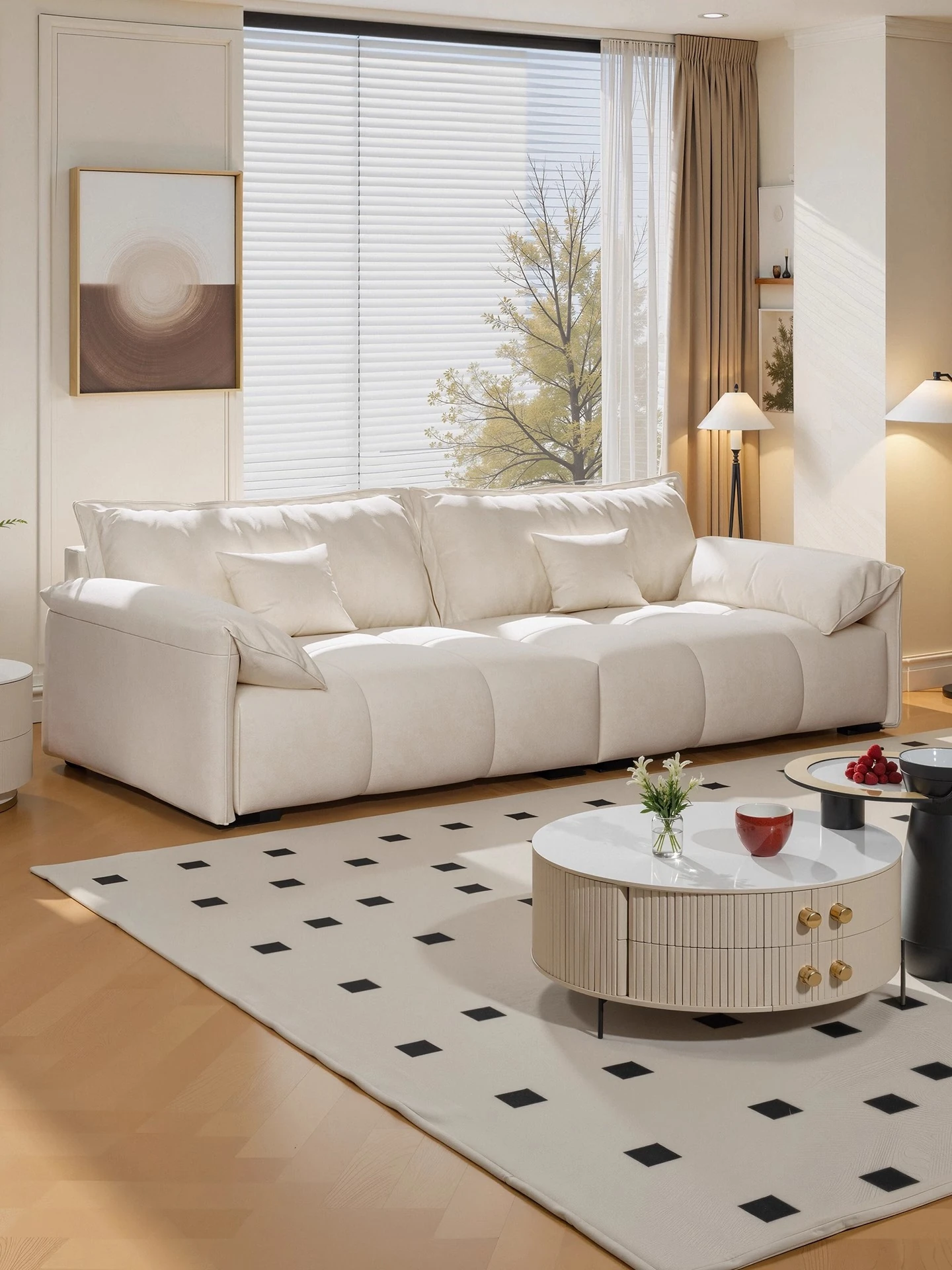 フレンチクリーム風マシュマロクッションのリビング用布製ソファ、モダンでシンプルなデザイン、小型住宅に最適な雲のような直置きソファ。快適さとスタイルを両立!