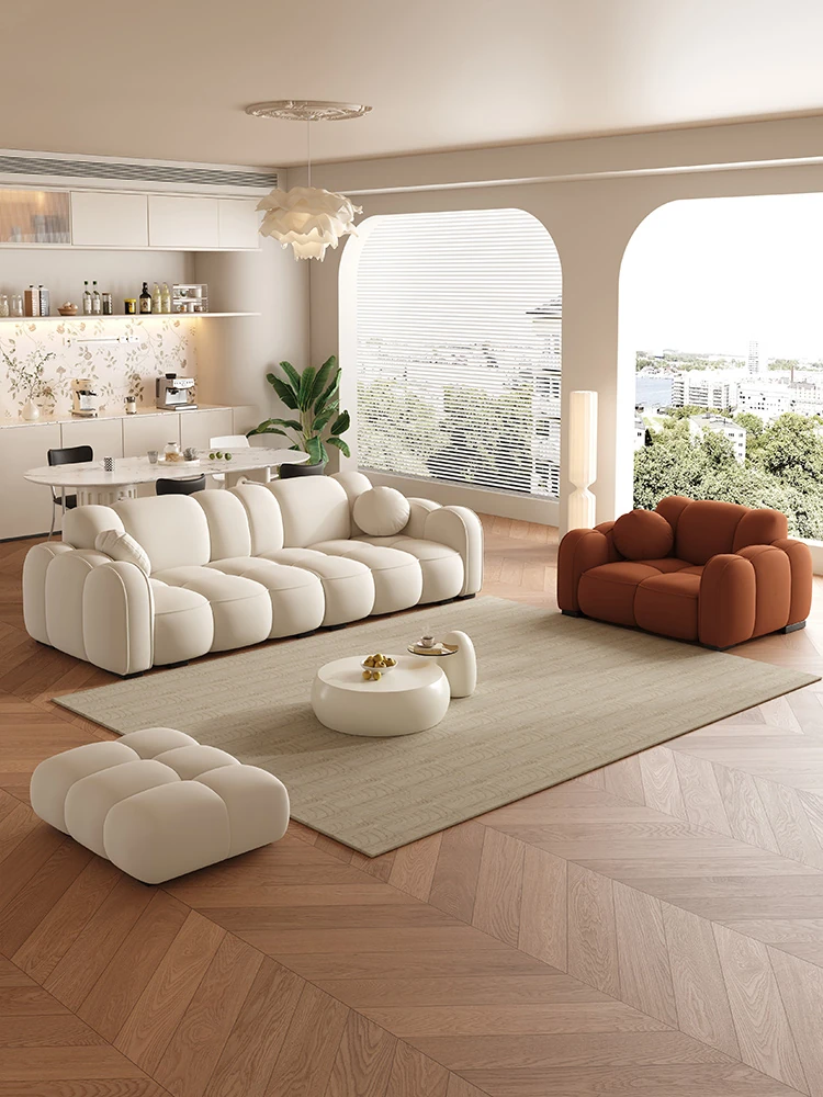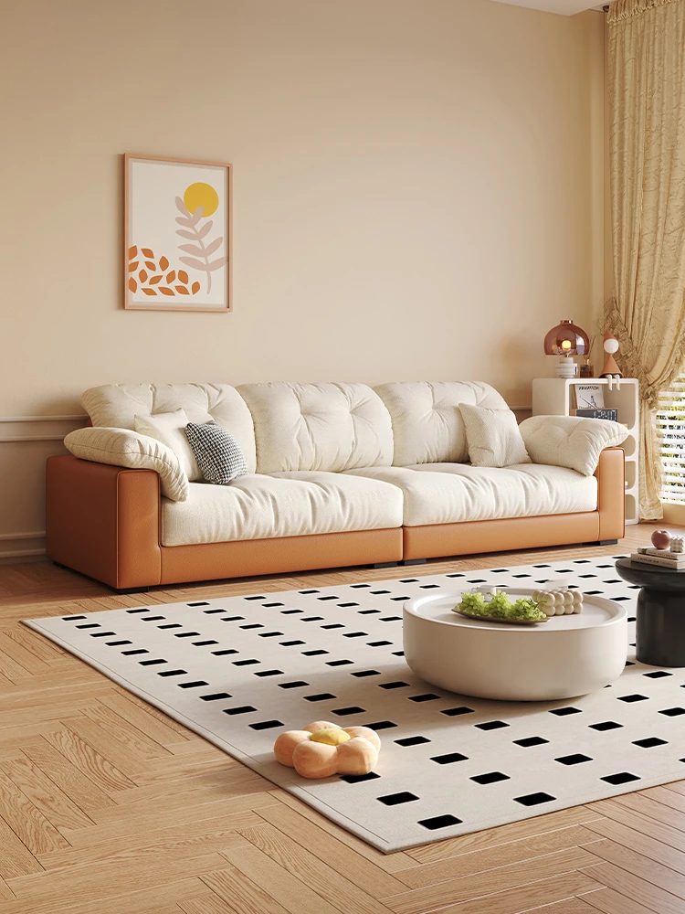 クリーム風リビング用オーストラリア産フランネル布レザーソファ 小型住宅向け シンプルモダンな一字型デザイン 2025年モデル