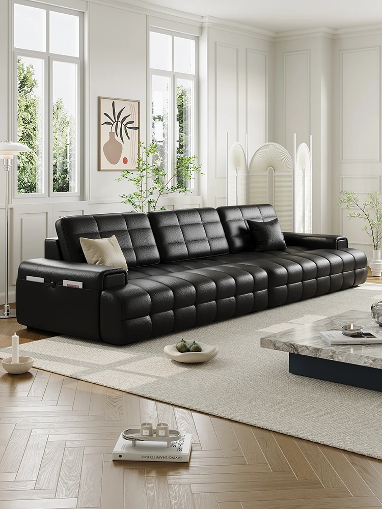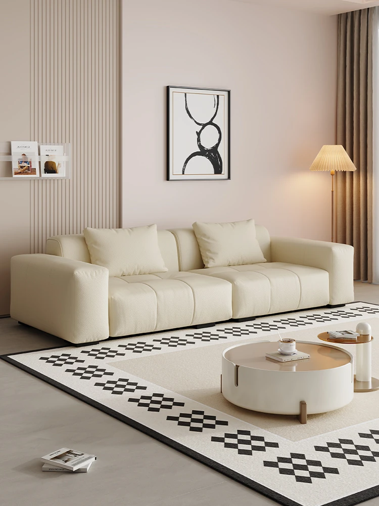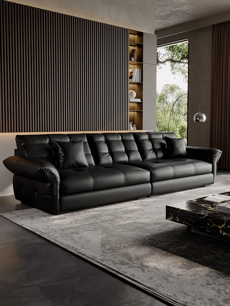 イタリアンミニマリズム 大黒クマ リビング用レザーソファ モダンシンプル 高背もたれ トーフブロック 直排ラテックスソファで、スタイリッシュな空間を演出!