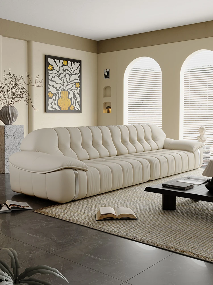 イタリアンミニマリズムのピアノキーソファ|現代的なシンプルデザイン|小さなリビングにもぴったり|スタイリッシュな金属脚と雲のようなレザー仕上げで、快適さと美しさを両立!