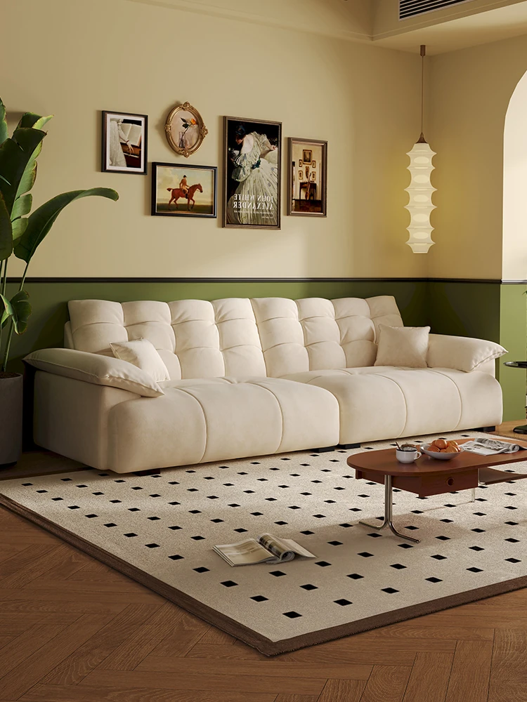 フレンチクリーム風ブラックシュガークラウドファブリックリビングソファー 小型住宅向け ヴィンテージライトラグジュアリー キャットグラブレザー ストレートソファーで、心地よいひとときをお楽しみください!