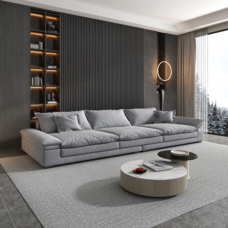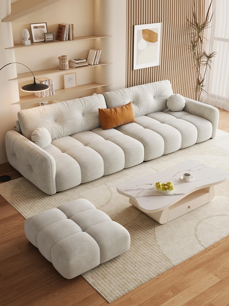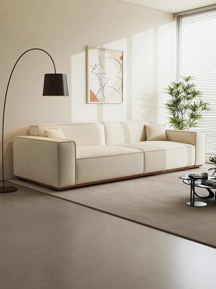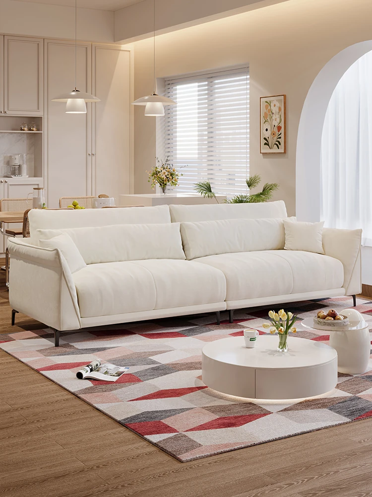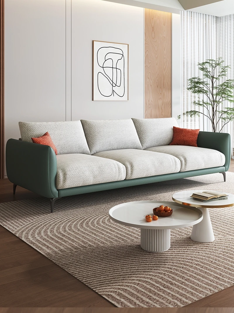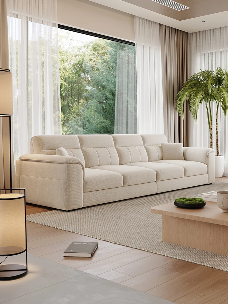 イタリアンミニマル軽奢感マットファブリックストレートソファ|現代的なシンプルデザイン、ダウン&ラテックス使用の人気インスタ風リビングソファ!