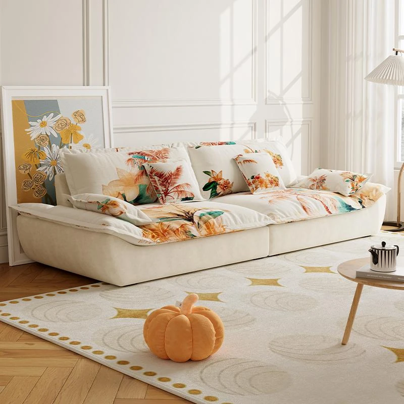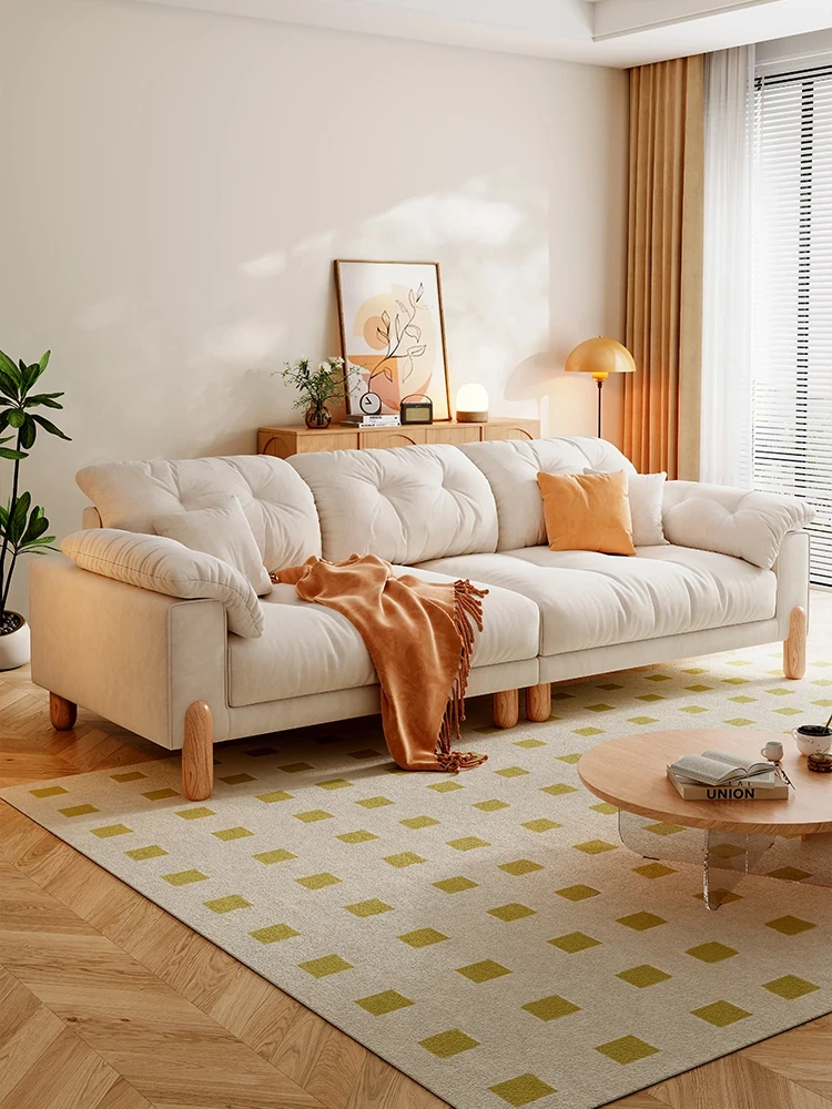 クリーミーなマシュマロ風ソファ|モダンミニマリストデザイン|小さなお部屋にもピッタリ|ふわふわの雲のような心地よさ|リビングを優雅に彩る|おしゃれで快適な暮らしを実現!