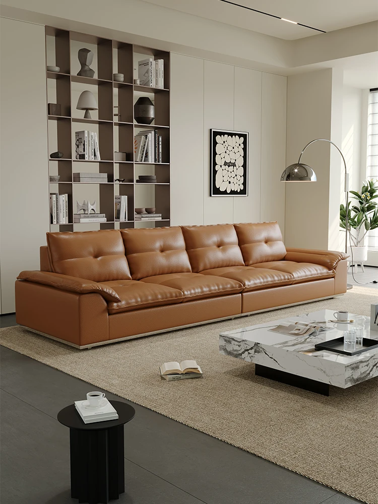 イタリアンミニマリストリビングソファ ステンレススチール浮遊デザイン シンプルで超広々とした座面 深い座り心地のレザーソファ どんな部屋にもぴったりのリラックスタイムを提供!