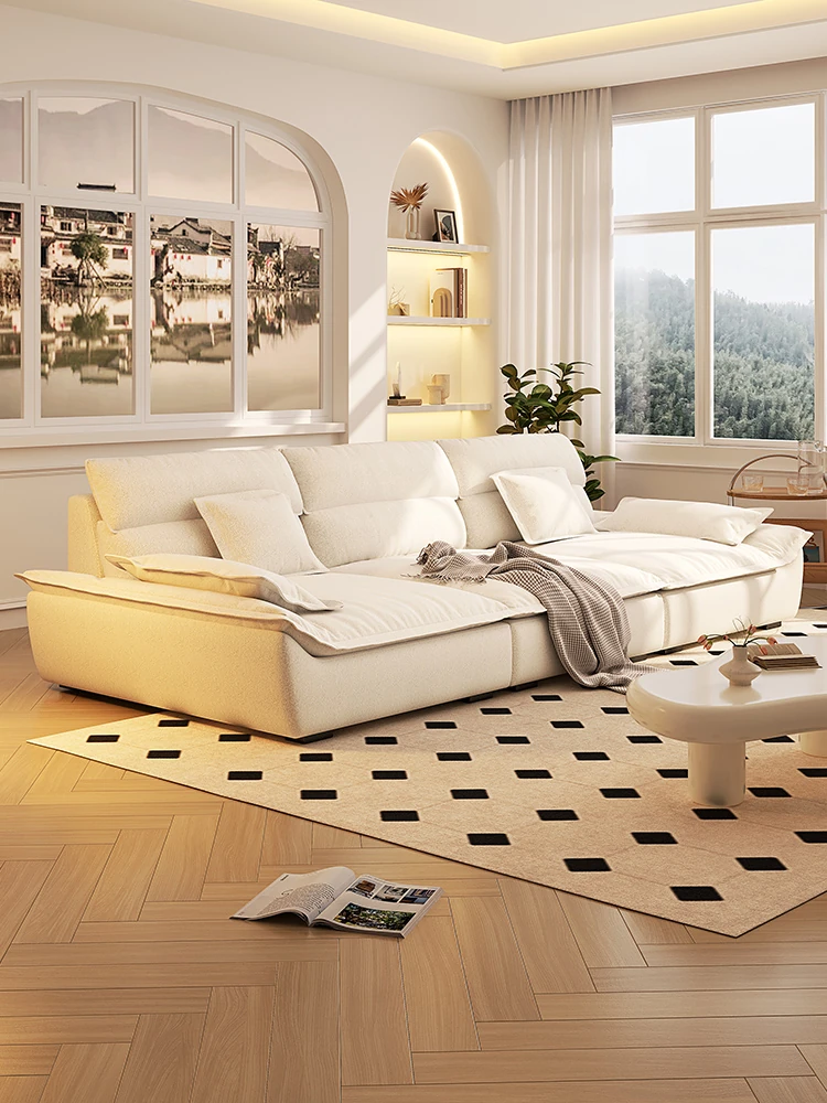 イタリアンミニマルデザインの雲感ファブリックセーリングソファー、調整可能な背もたれと広々とした座面で、ラグジュアリーなリビング空間を演出。機能性とスタイルを兼ね備えた一品です!
