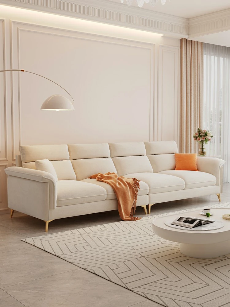 フランス風クリームシュークリームマシュマロ生地ソファ 2025年新作 小型リビングに最適なストレートソファで、居心地抜群の空間を演出!
