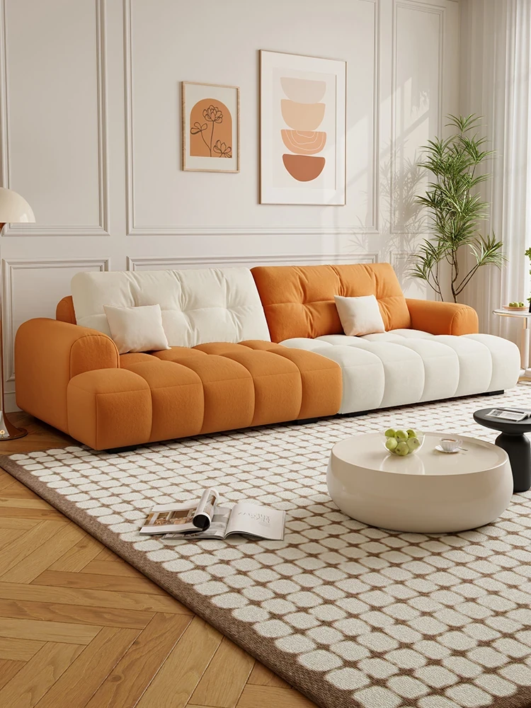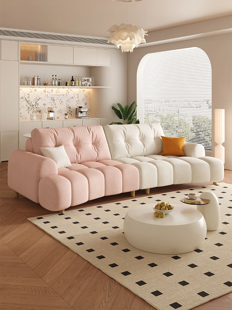 Creamy Cloud Velvet Biscuit Sofa - Stylish Two-Tone Design for Small Spaces, Perfect for Cozy Living Rooms - Trendy Ins Aesthetic Fluffy Cotton Comfort