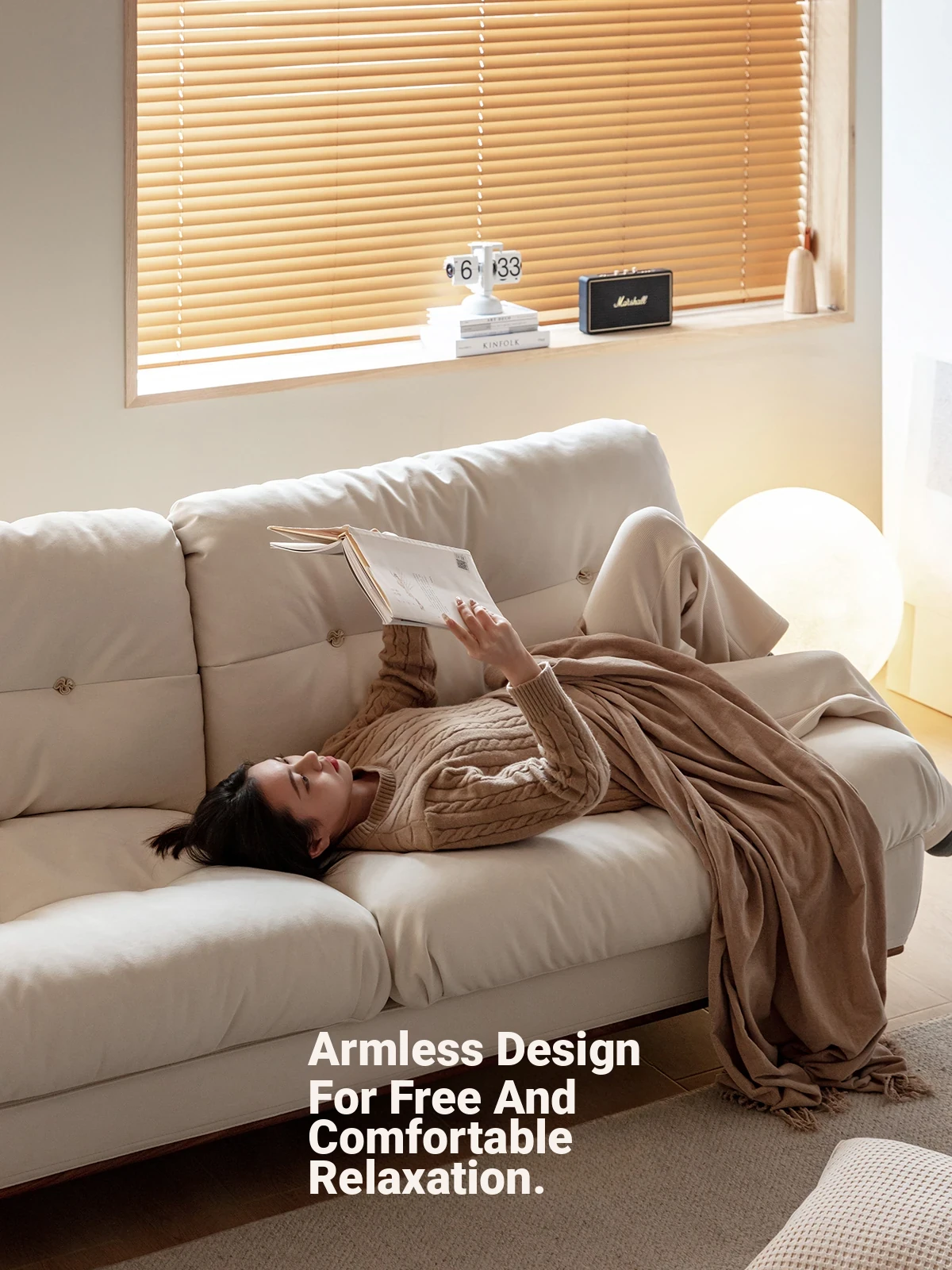 French Cream Wind Puff Sofa - Modern High-Back Cloud Sofa for Small Spaces, Perfect for Your Living Room, Cozy Cotton Candy Design