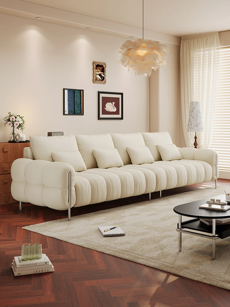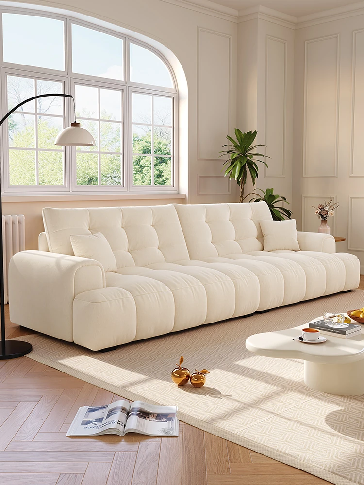 French Cream Puff Marshmallow Sofa - High-Back Design for Small Spaces, Perfect for Living Rooms with Elegant Upholstery and Cozy Comfort.