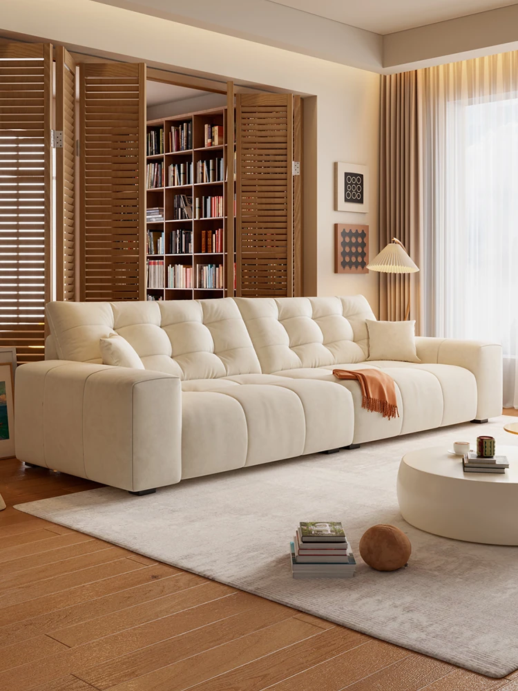 Modern Minimalist Cream-Colored Skin-Friendly High-Quality Velvet Sofa for Apartments - Cloud-Style Straight Sofa Perfect for Small Living Rooms