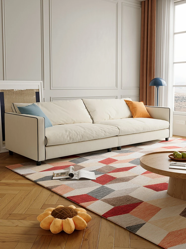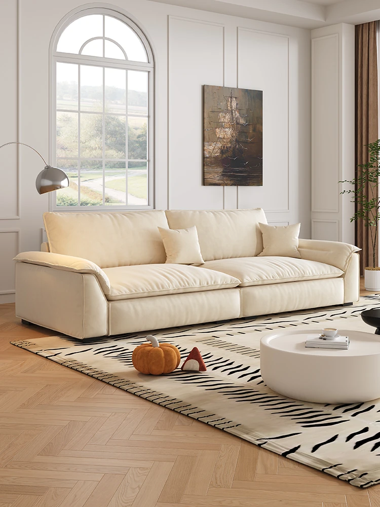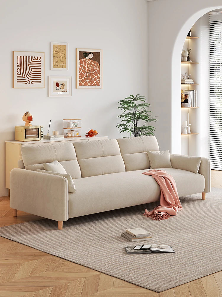 French Creamy Fabric Sofa - Modern Minimalist Design for Small Spaces, Cat-Proof and Scratch-Resistant, Stylish Latex Upholstered Couch for Trendy Living Rooms