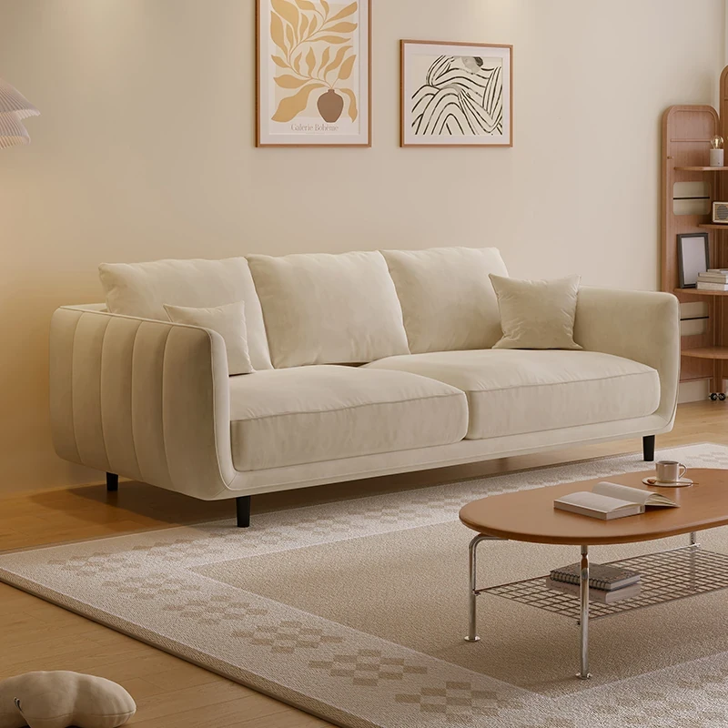 Modern Minimalist Cream Velvet Fabric Sofa for Living Room - Skin-Friendly Soft Suede Block Design for Small Spaces