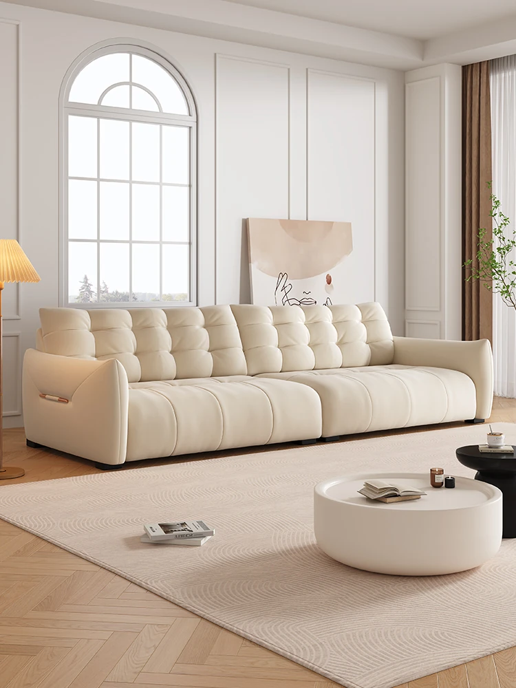 2025 New Creamy Style Compact Living Room Cat Scratch Resistant Sofa - Minimalist Apartment Straight Puff Leather Sofa