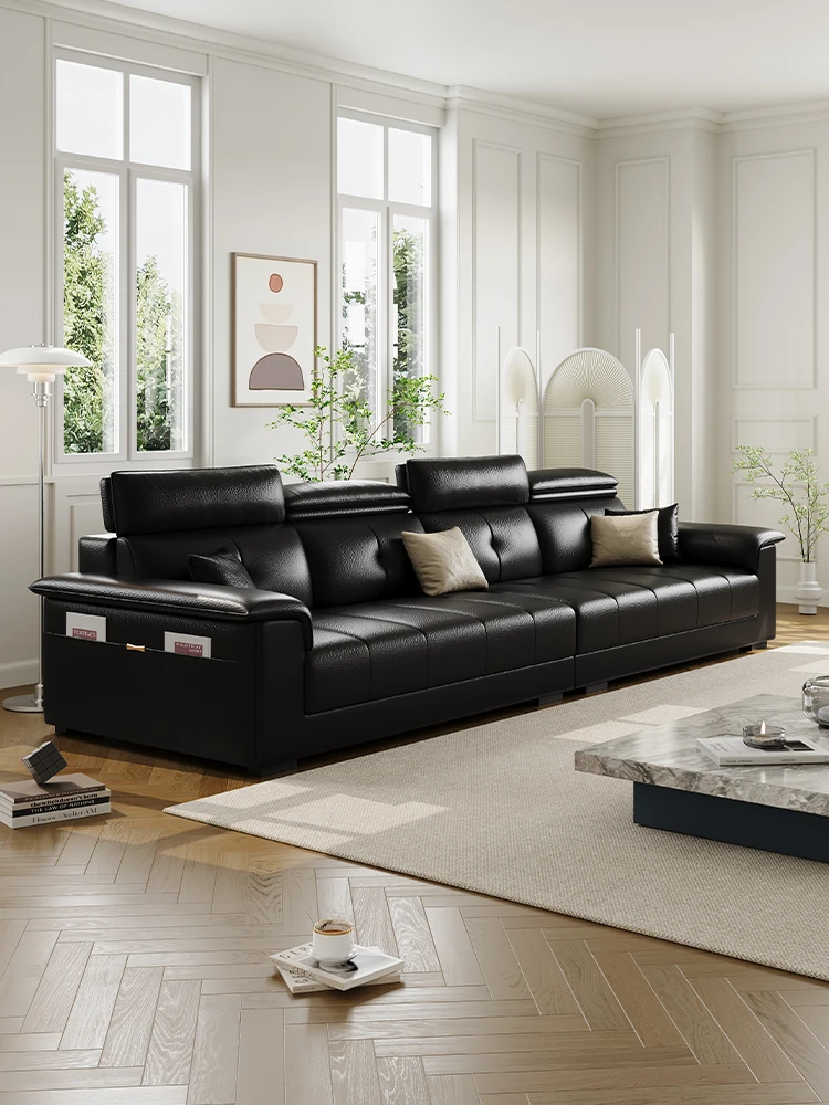 Italian Minimalist Lawrence Genuine Leather Sofa - Modern Luxury New Arrival for Villas and Spacious Homes, Sleek Design with Straight-Line Structure