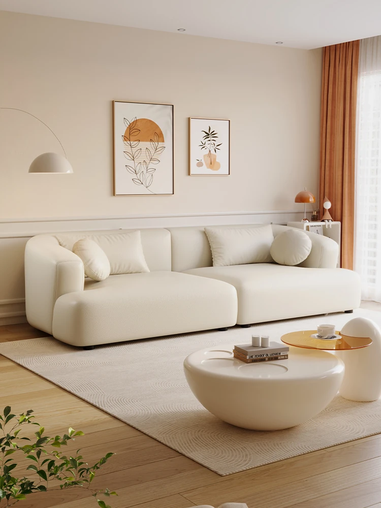 Modern French Cream Hugging Sofa for Small Apartments – Minimalist Style for Living Rooms & Guesthouses, 2025 New Arrival