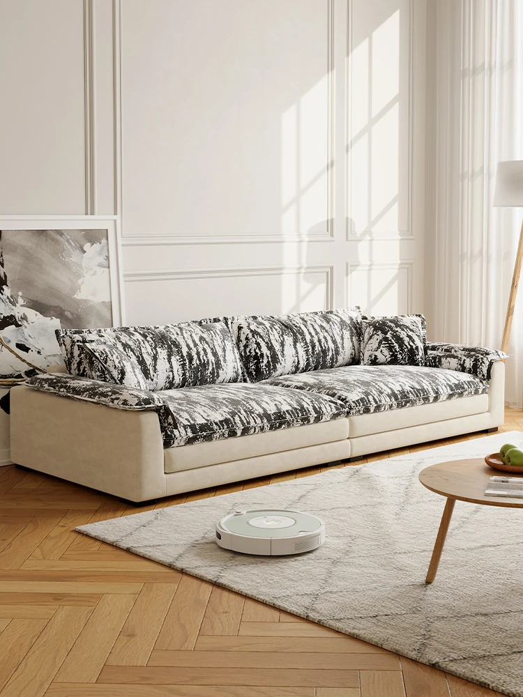 Trendy Chinese Style Oversized Deep Seat Sailboat Sofa - Perfect for Small Living Rooms, Featuring Elegant Ink Wash Design for Ultimate Comfort and Relaxation.