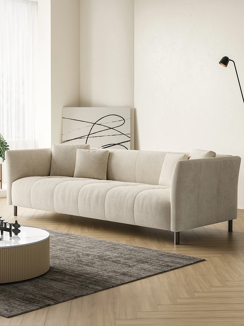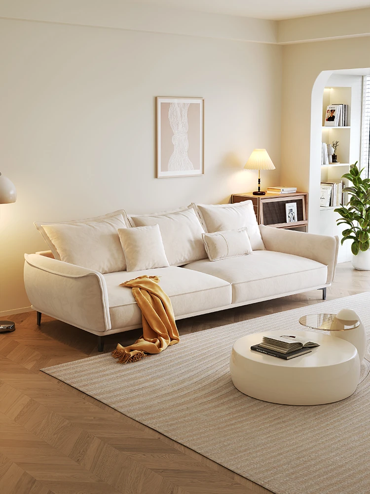 Modern French Cream Style Fabric Sofa for Small Living Rooms - New Minimalist Design for Apartments and Guesthouses, Featuring a Solid Wood Frame and Straight-Line Elegance.