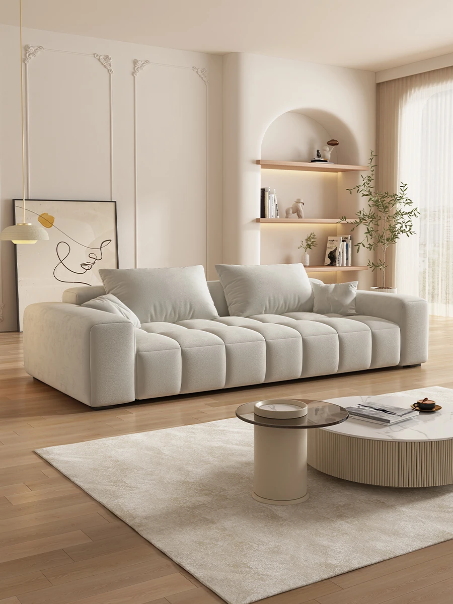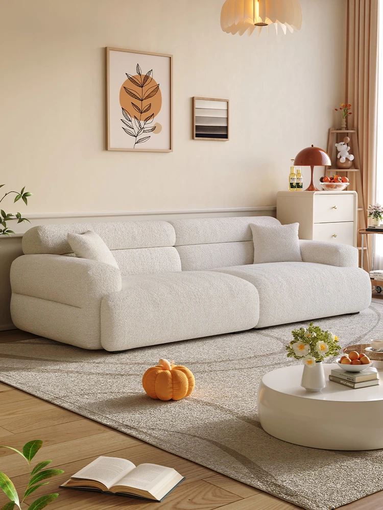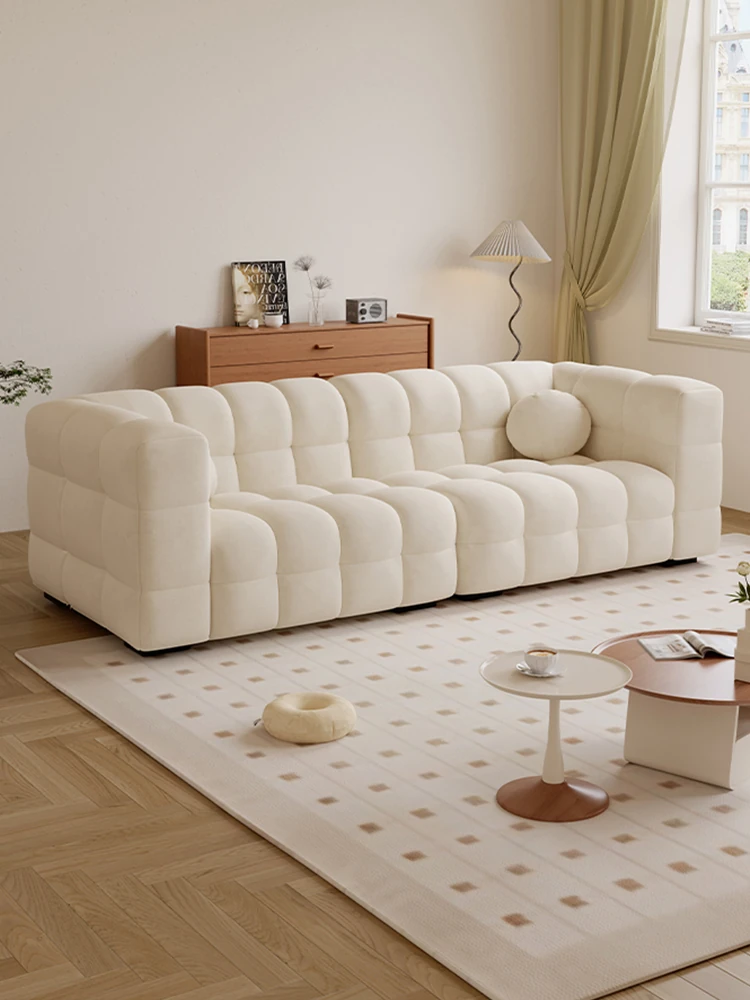 Cozy Creamy Lamb Fleece Cotton Candy Sofa – Perfect for Small Apartments & Rentals, Stylish Straight Design for Living Rooms & Guest Houses