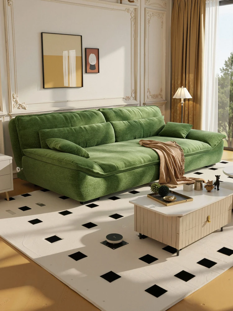 French Velvet Upholstered Sofa – Deep Seat with Cloud-Like Chenille and Down Filling – Elegant High-Leg Design for Your Living Room