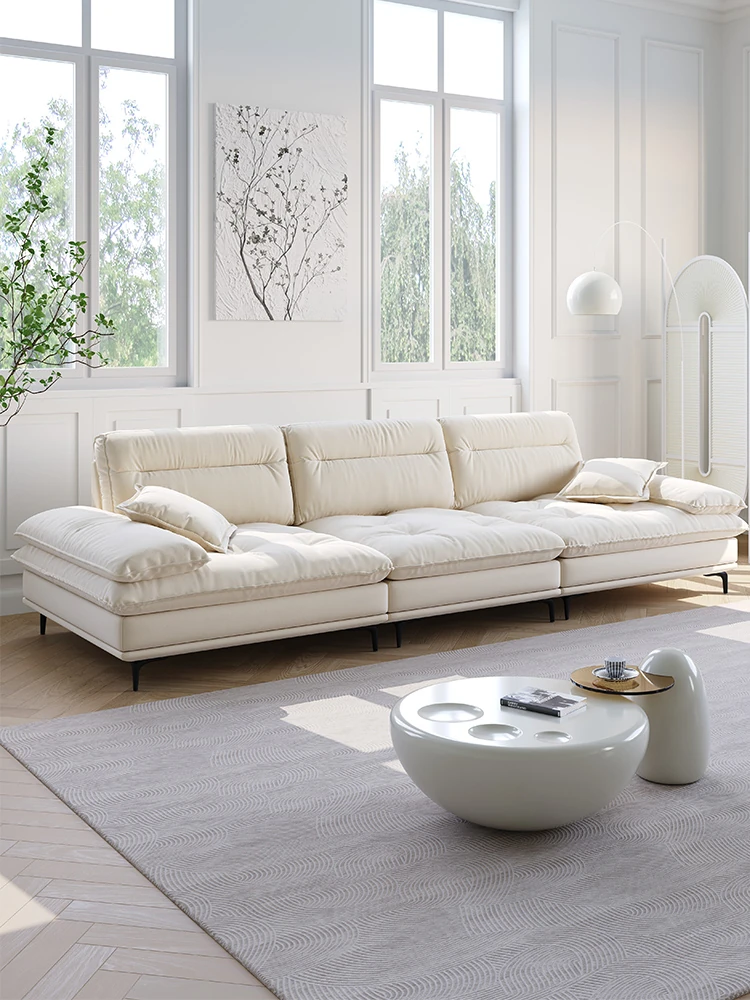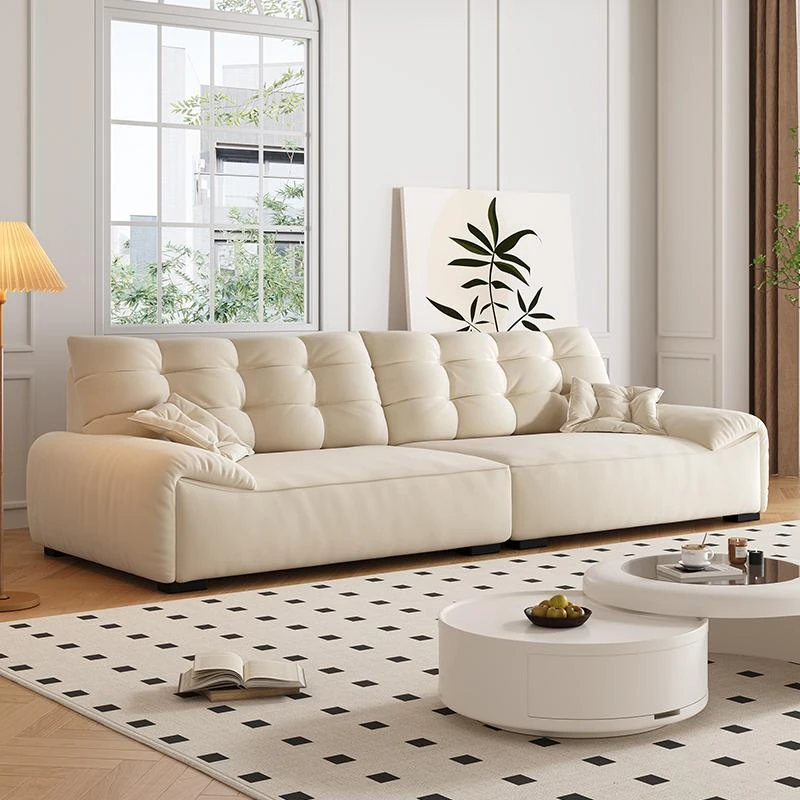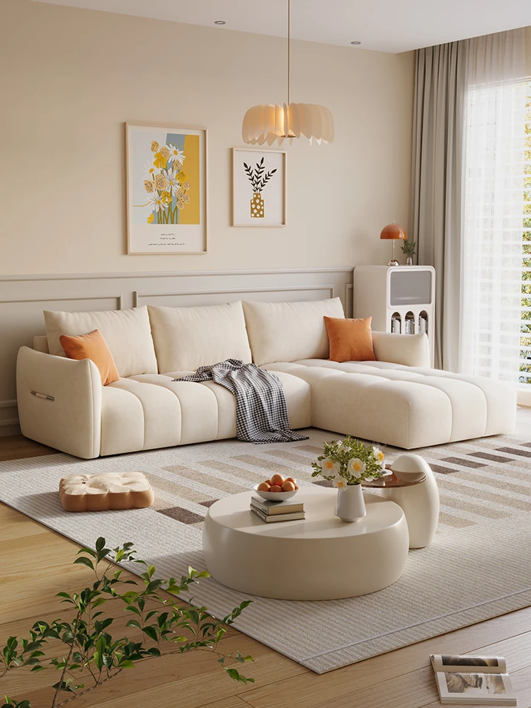 French Cream Puff Style L-Shaped Modern Minimalist Chaise Lounge Sofa for Small Spaces - Chic Corner Sofa Set for Your Living Room