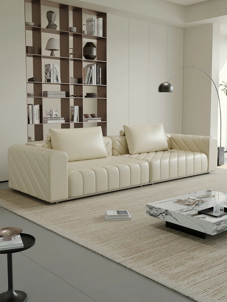 Italian Minimalist Lawrence Large Leather Sofa - Modern Simple Luxury Piano Key Design for Villa Living Room
