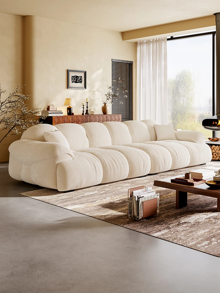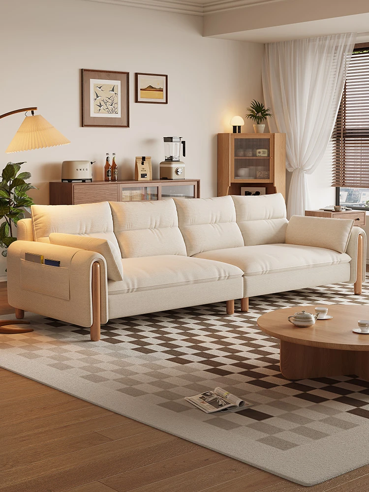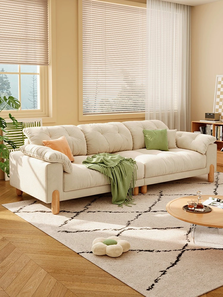 Luxurious Natural Wood Cream Baby Plush Cloud Sofa - Ultra Soft Rubber Wood Solid Fabric with Down-Like Latex Particles for Your Living Room