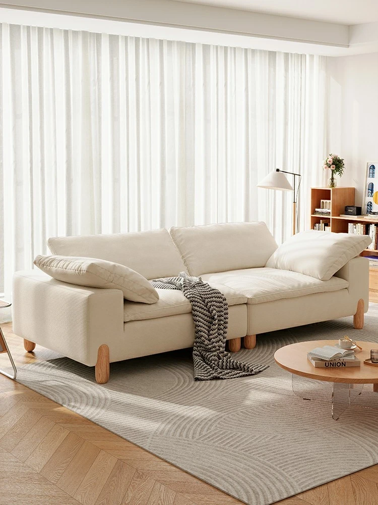 Thickened Manchester Corduroy Sofa with Creamy Wood Finish - Extra Wide and Deep Cloud Sofa for Living Room, Elevated Design for Ultimate Comfort