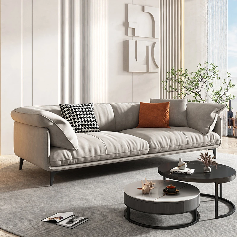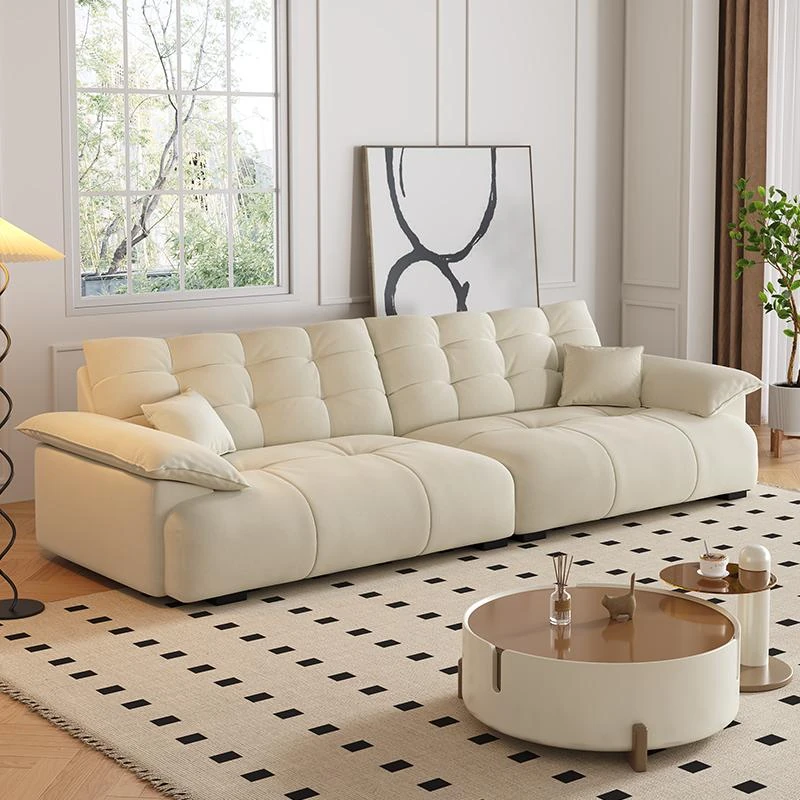 Italian Minimalist Comfortable Suede Fabric Elephant Ear Sofa with Spring Frame for 3-4 People - Trendy Design for Your Living Room