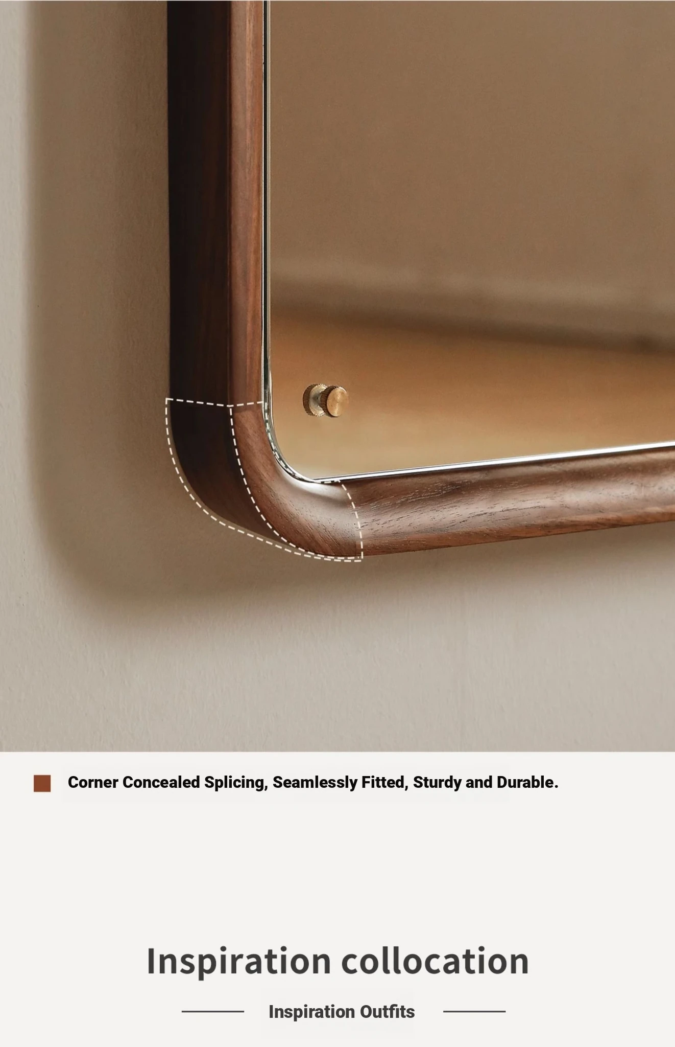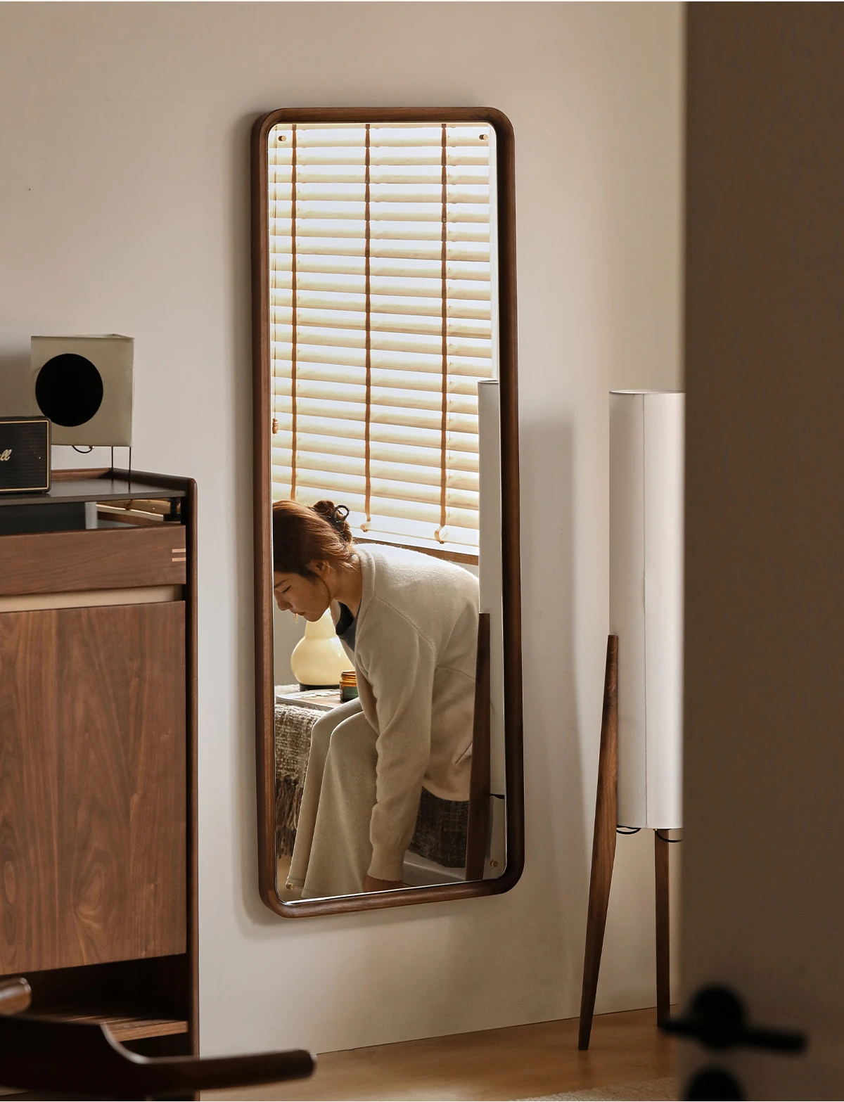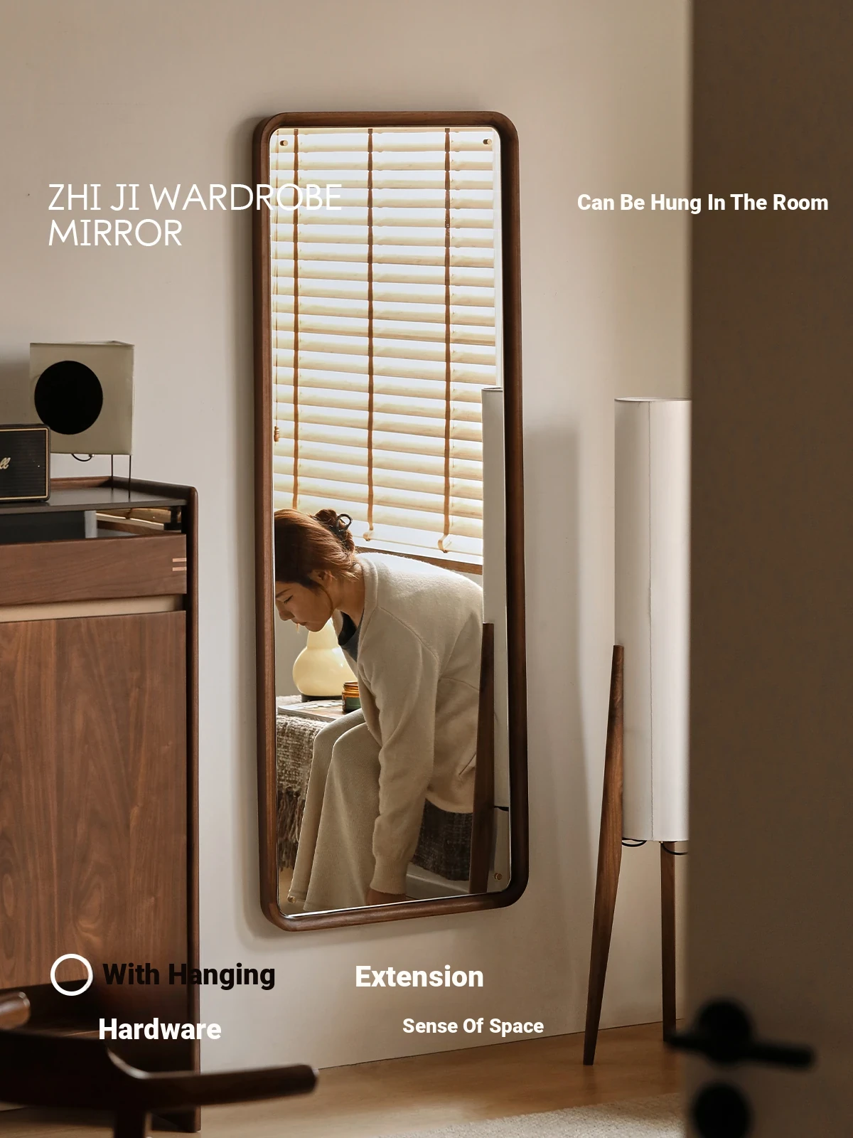 Nordic Style Solid Wood Full-Length Mirror with Black Walnut Finish - Versatile Floor Mirror for Bedroom and Wall-Mounted Use, Perfect for Dressing and Outfit Trials