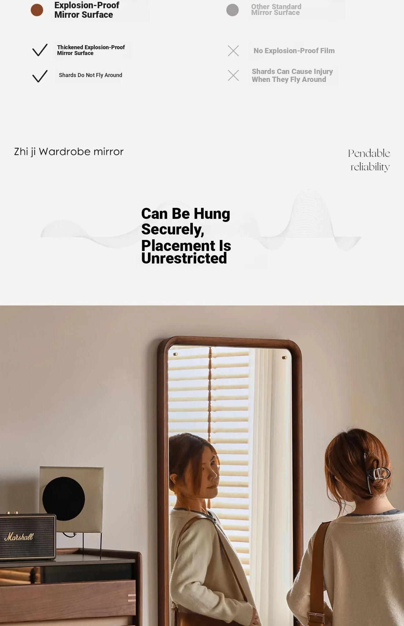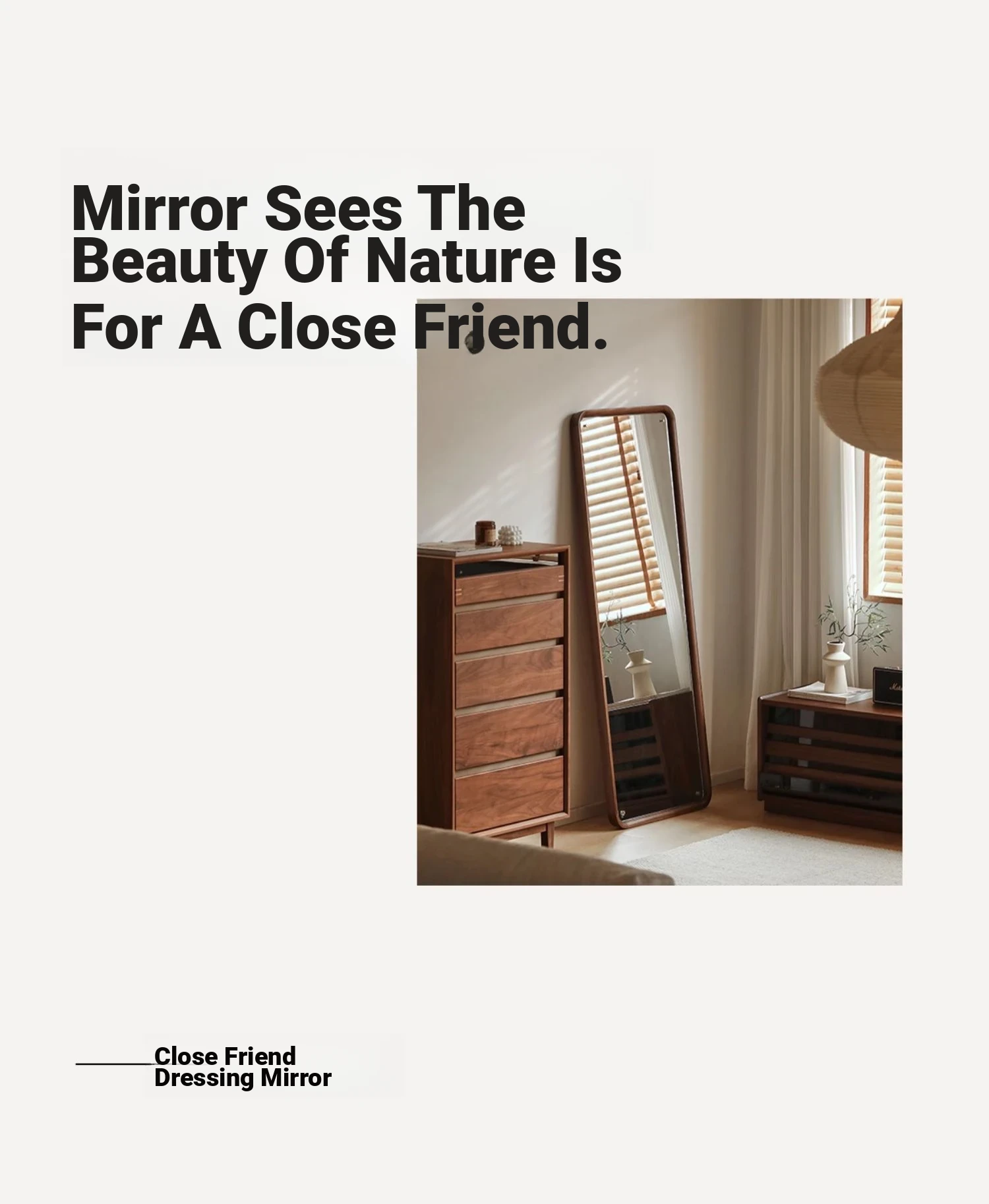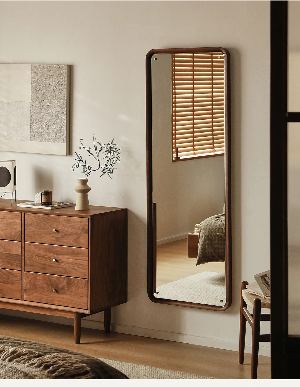 Nordic Style Solid Wood Full-Length Mirror with Black Walnut Finish - Versatile Floor Mirror for Bedroom and Wall-Mounted Use, Perfect for Dressing and Outfit Trials