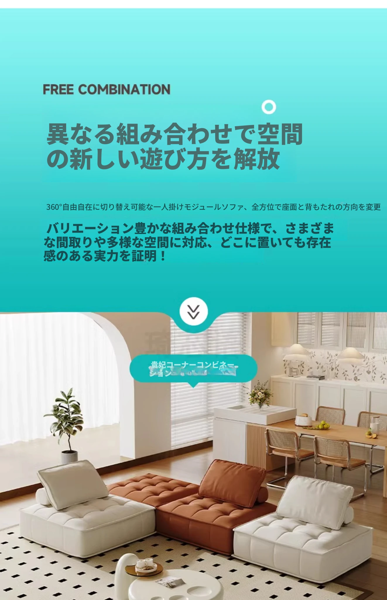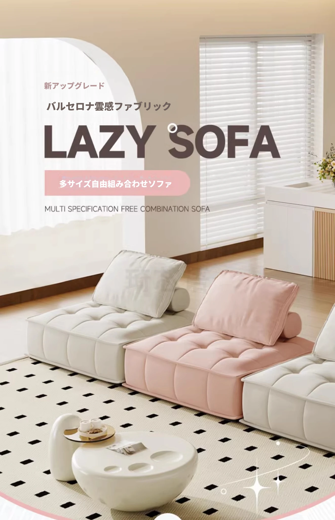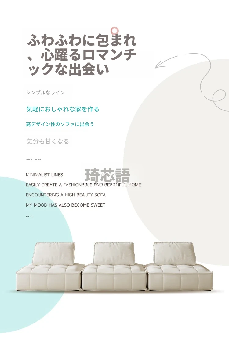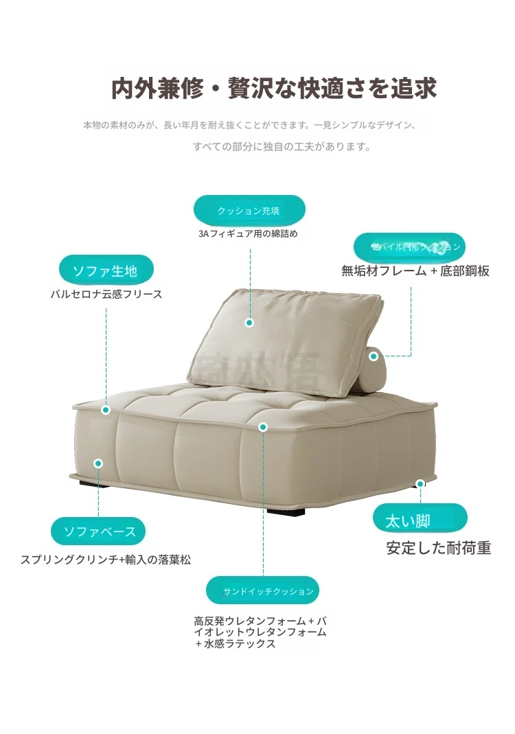 クリーミーバルセロナ雲感ファブリックソファ - コンパクトなリビングに最適なシンプルモジュール型ブロックソファ!おしゃれで快適な空間を演出し、あなたのライフスタイルにぴったり。
