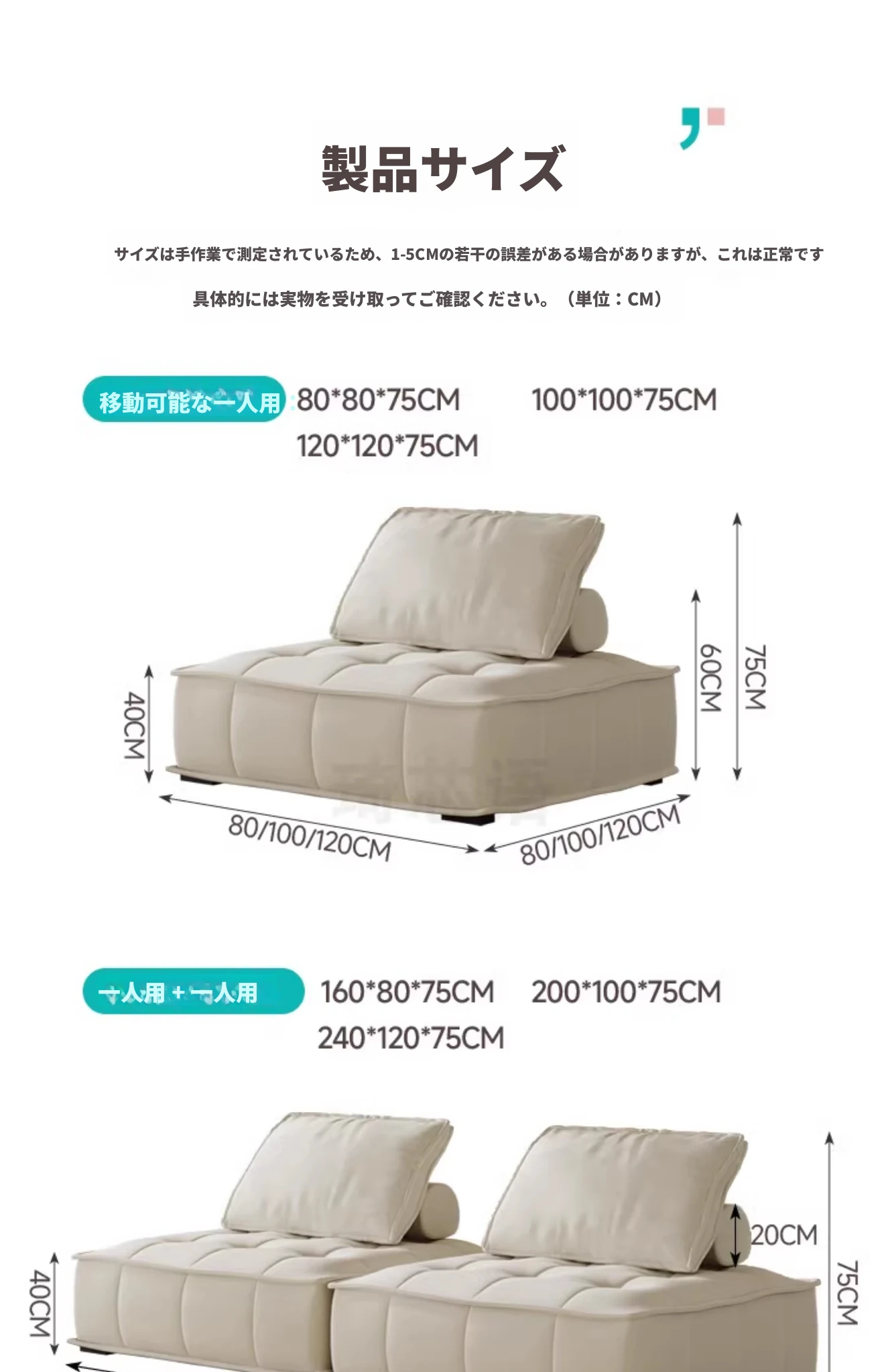 一人用1メートル【雲感サンドイッチクッション+ダウンクッション】