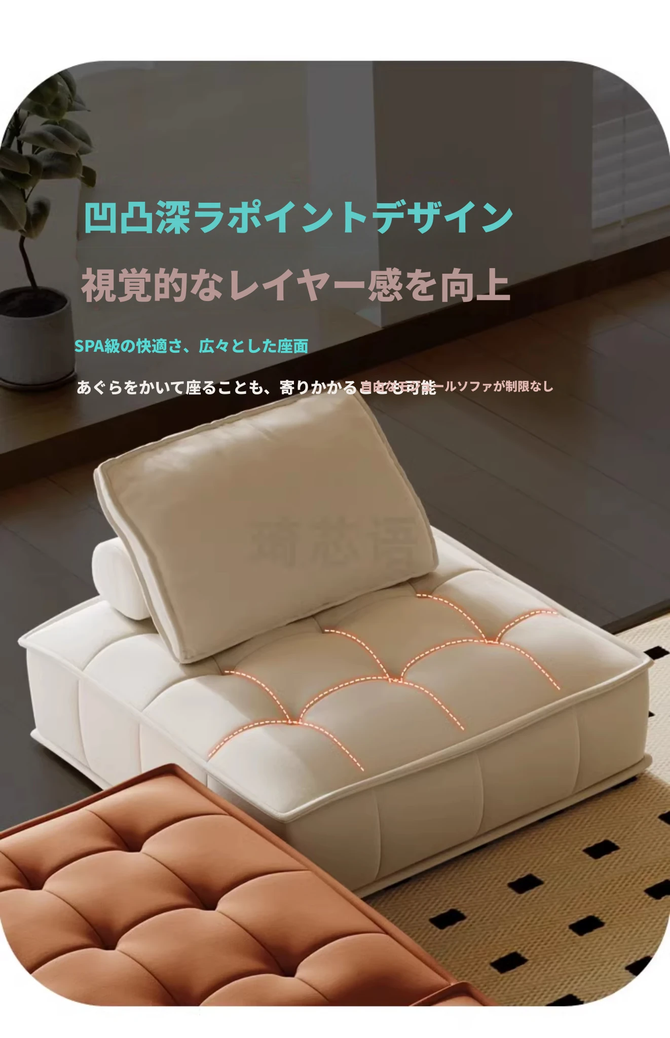 1.2メートルフットスツール【雲感サンドイッチクッション+ダウンクッション】