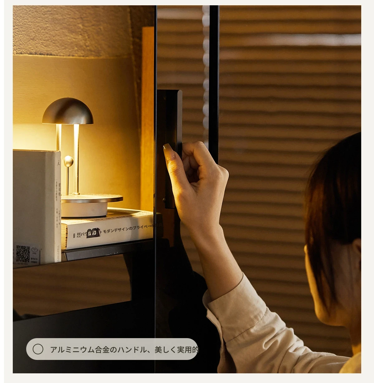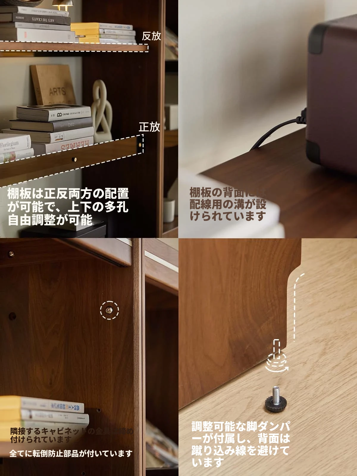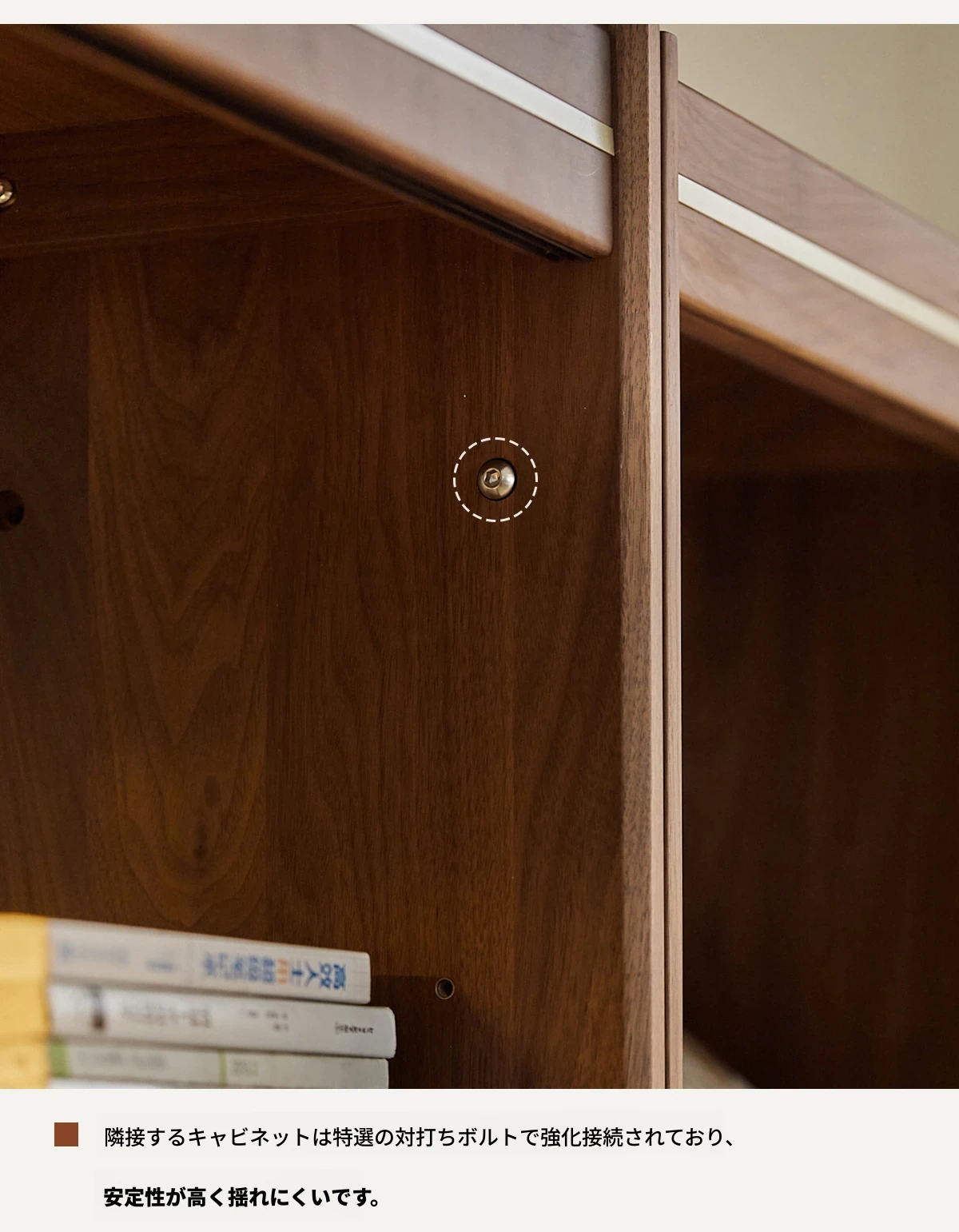 高級感溢れる無垢材の壁面一体型書棚、グラスドア付きのウォールナット書架。収納力抜群で、リビングや書斎に最適なディスプレイキャビネット。魅力的なデザインでお部屋を華やかに演出します。