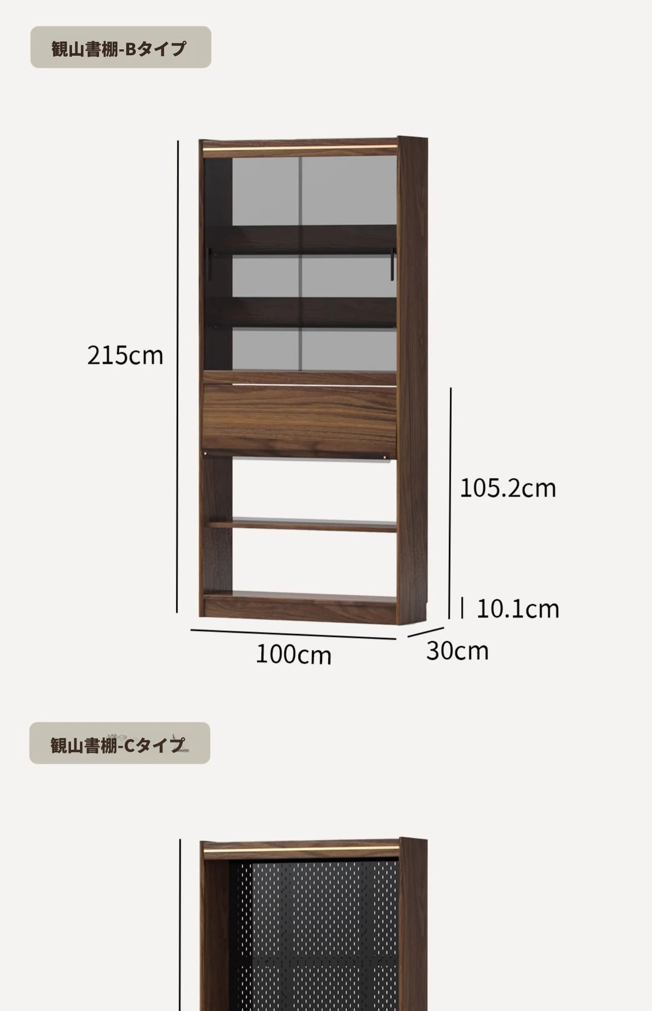 観山書棚(C棚)ブラックウォールナット(100*30*215cm)