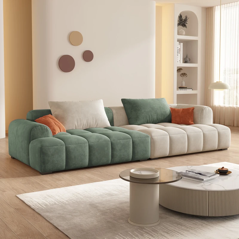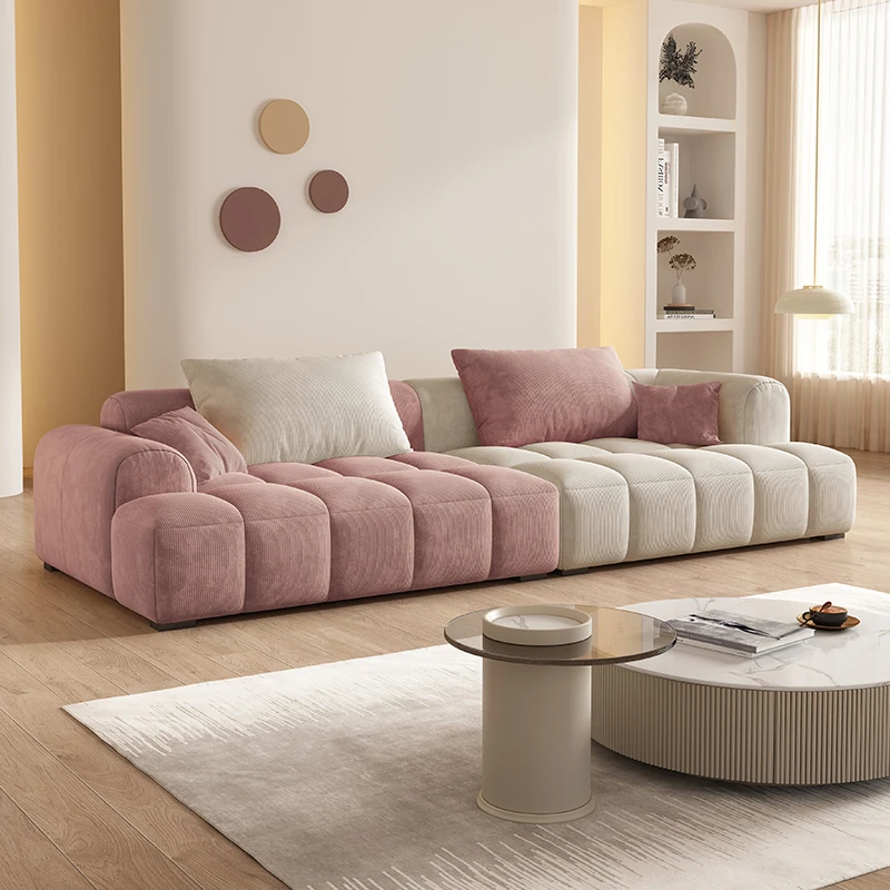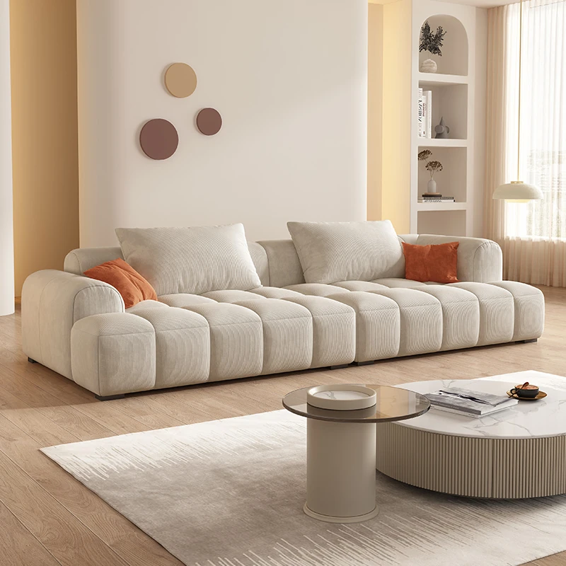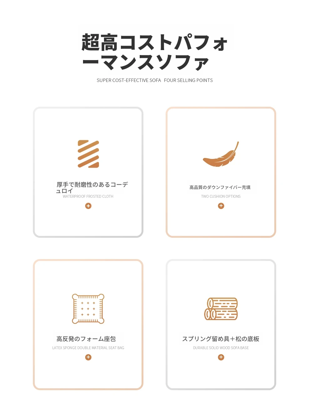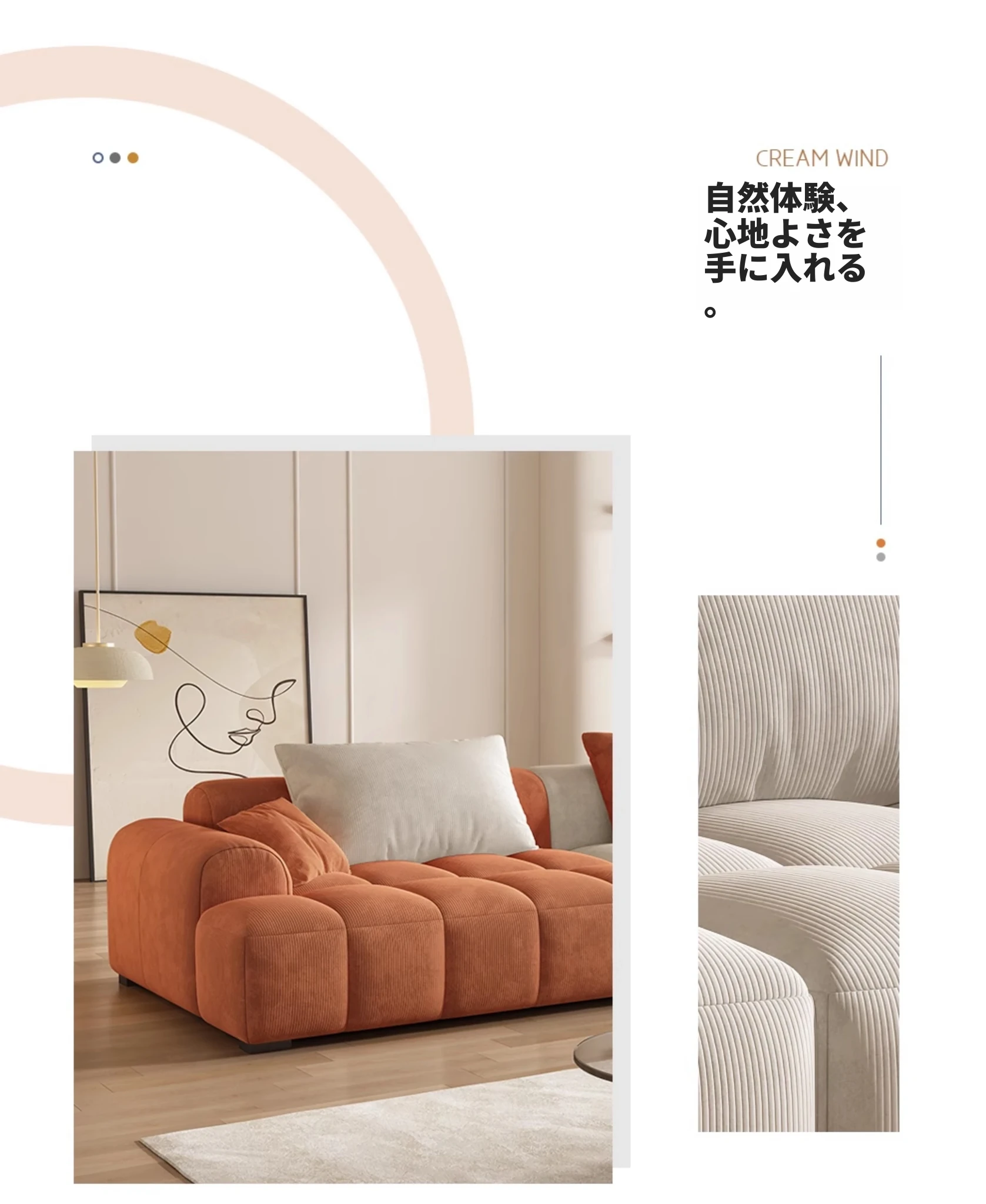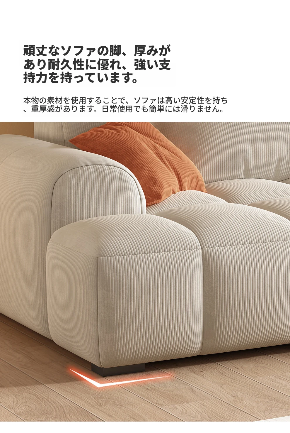 フランス風クリーム泡風ソファ、ふわふわマシュマロのような肌触り。リビングルームにぴったりなコーデュロイ素材のモダンミニマリスト直線デザイン、小さなスペースでもスタイリッシュに。