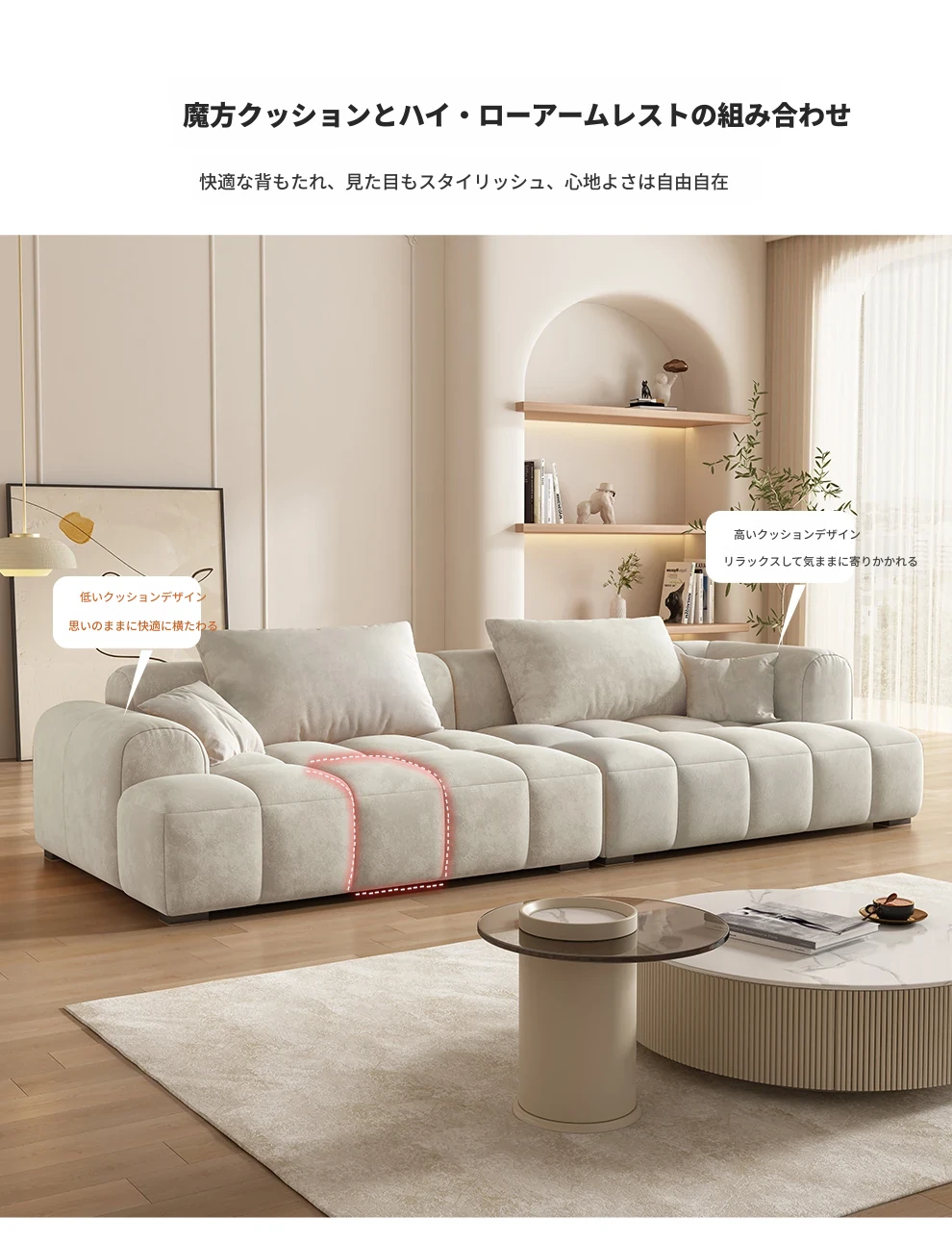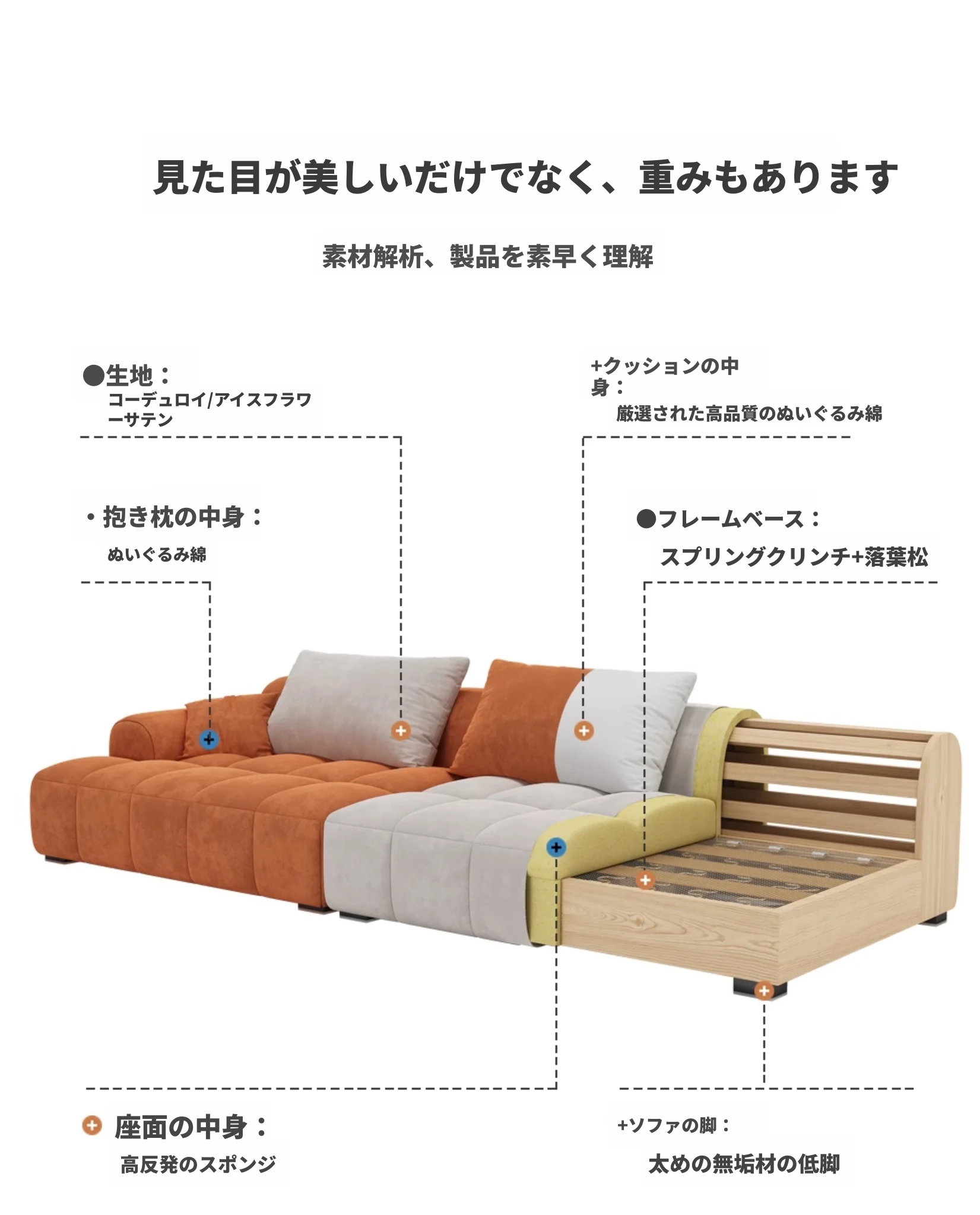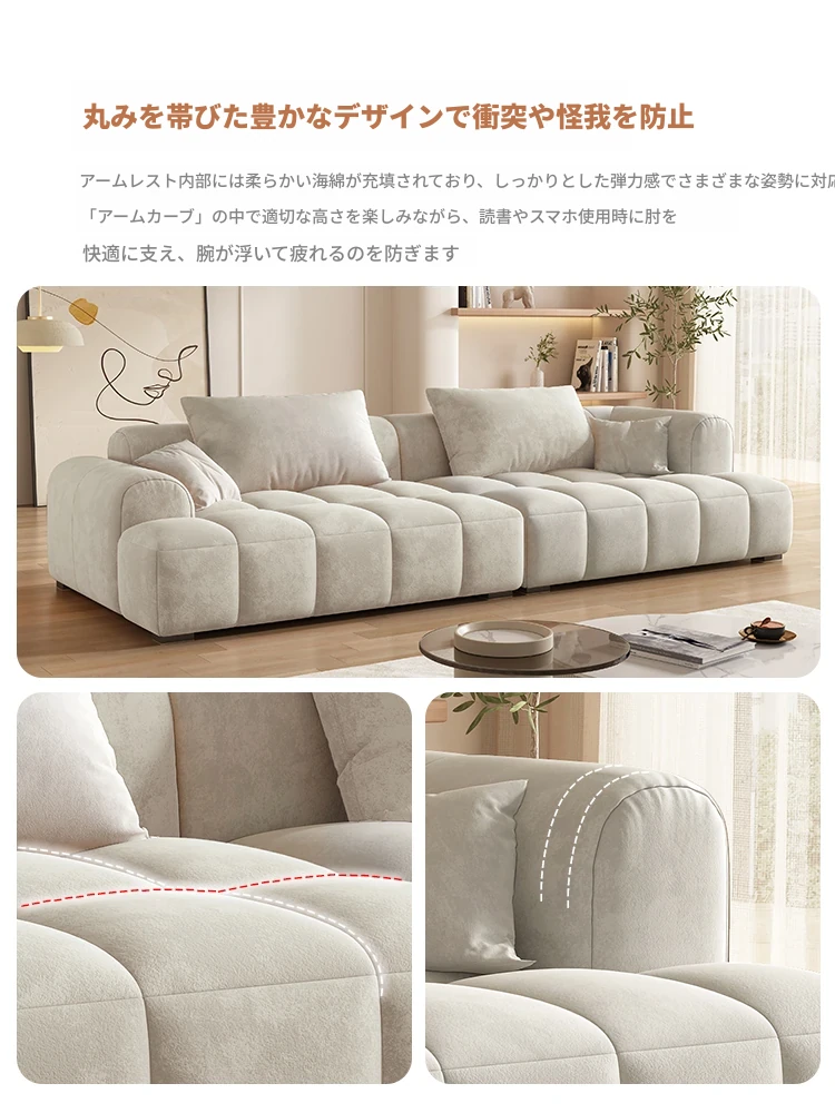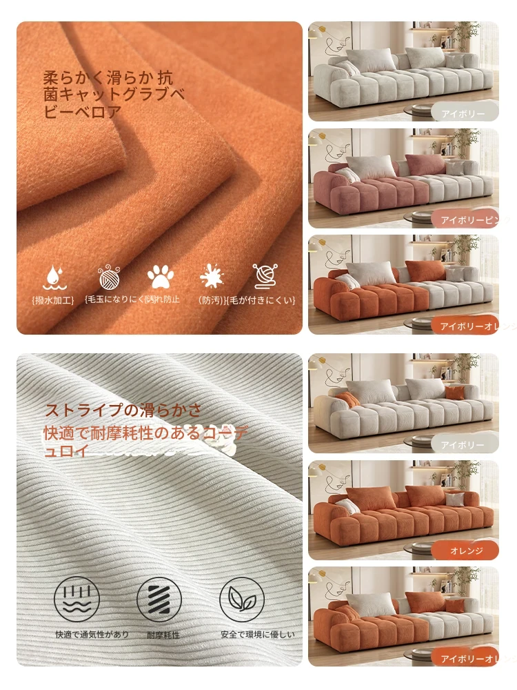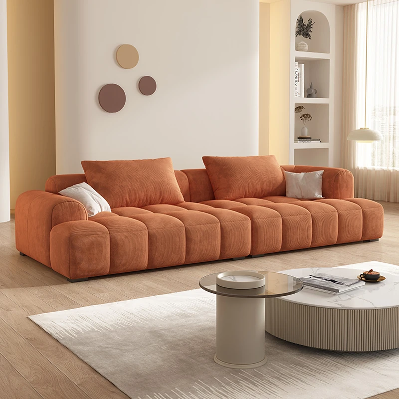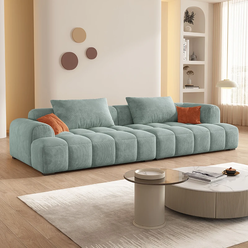 フランス風クリーム泡風ソファ、ふわふわマシュマロのような肌触り。リビングルームにぴったりなコーデュロイ素材のモダンミニマリスト直線デザイン、小さなスペースでもスタイリッシュに。