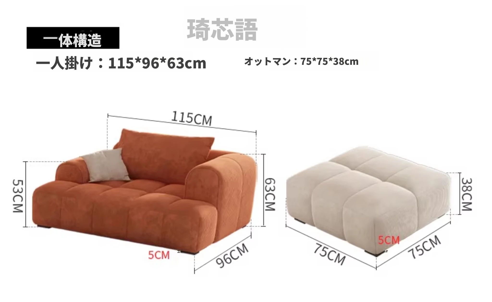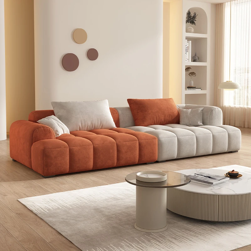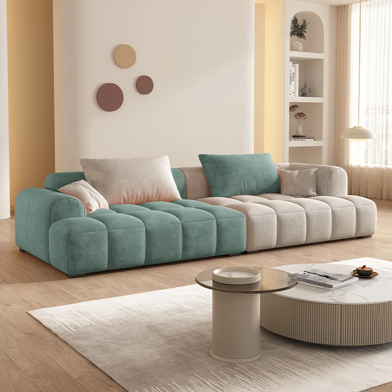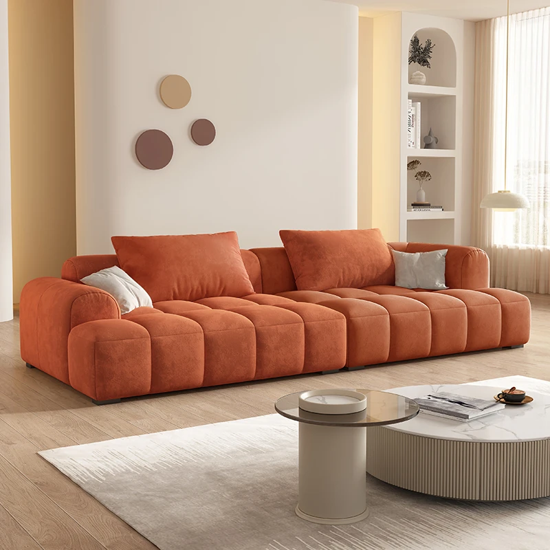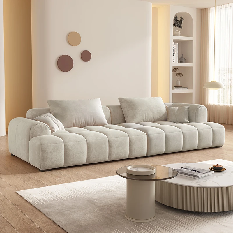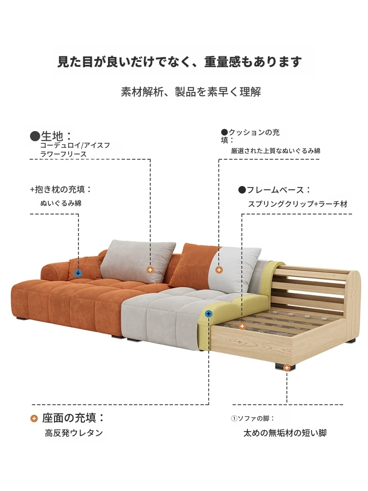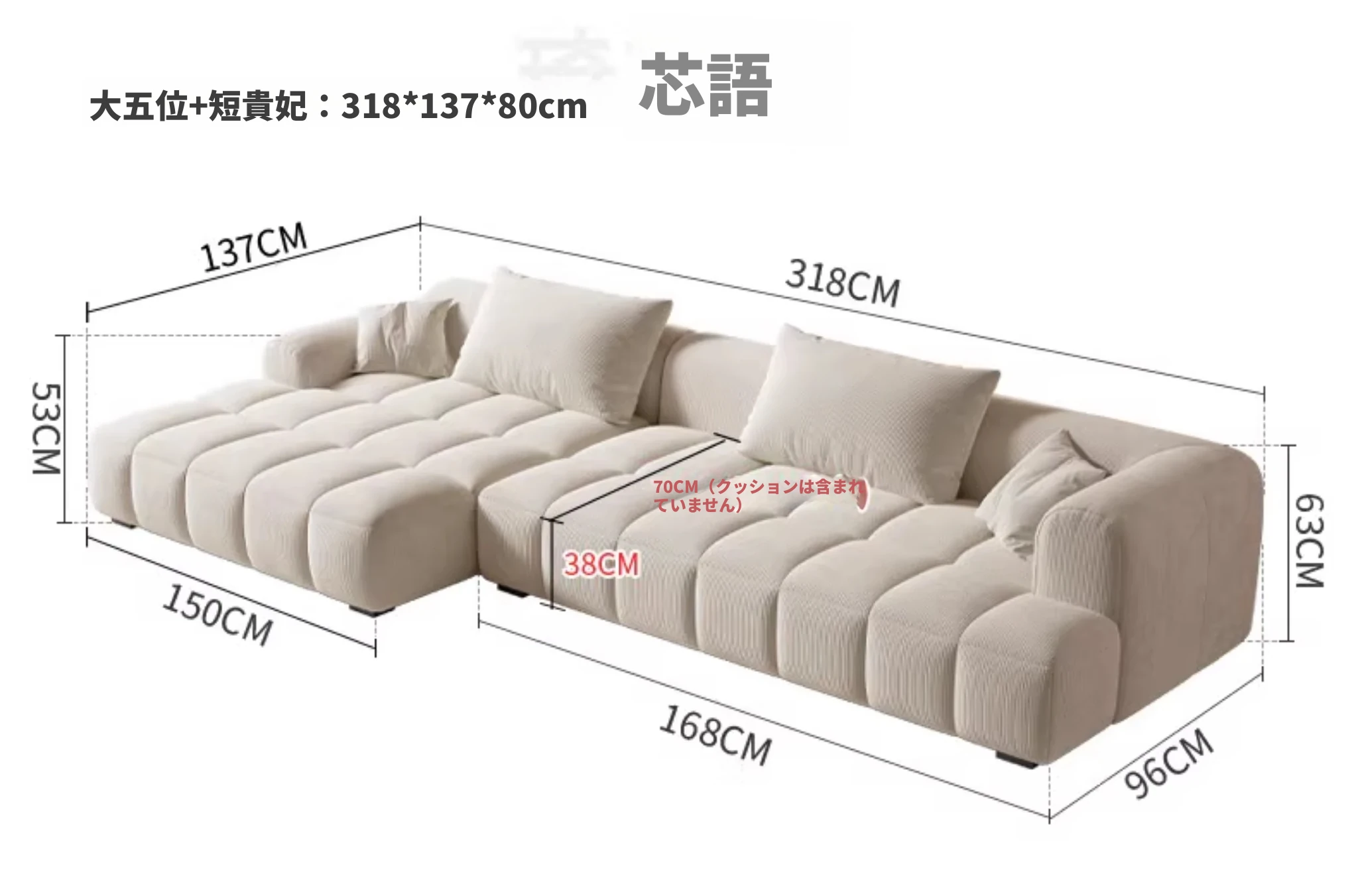フランス風クリーム泡風ソファ、ふわふわマシュマロのような肌触り。リビングルームにぴったりなコーデュロイ素材のモダンミニマリスト直線デザイン、小さなスペースでもスタイリッシュに。