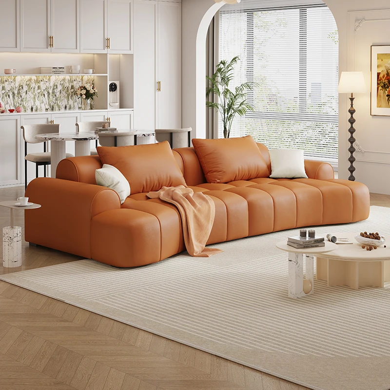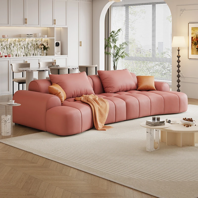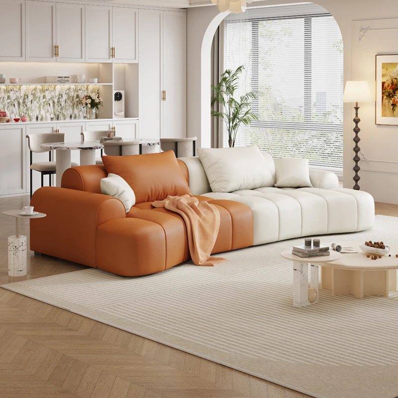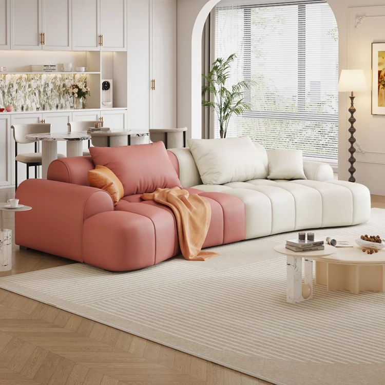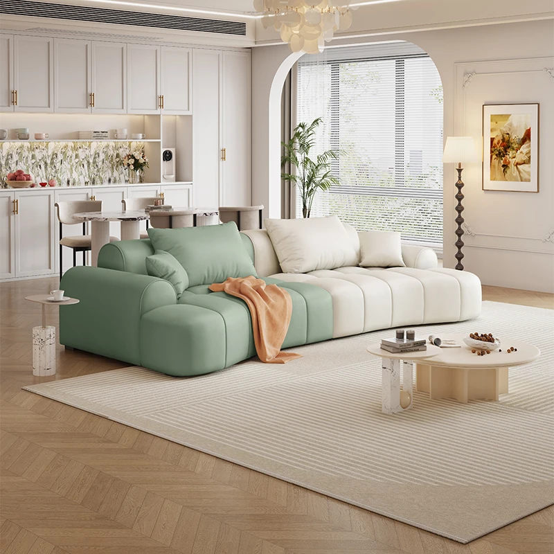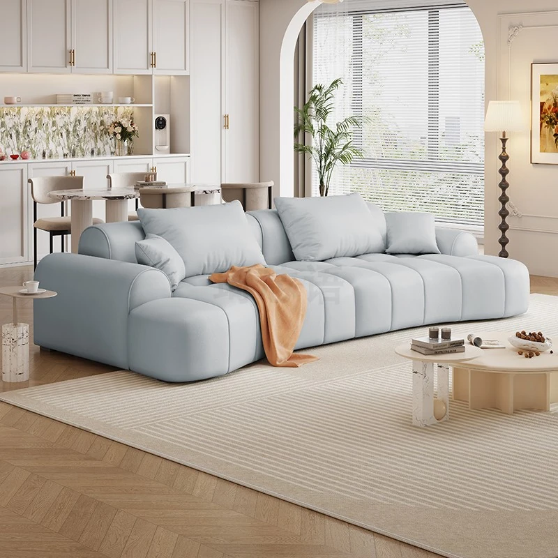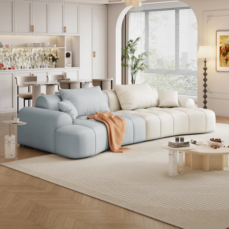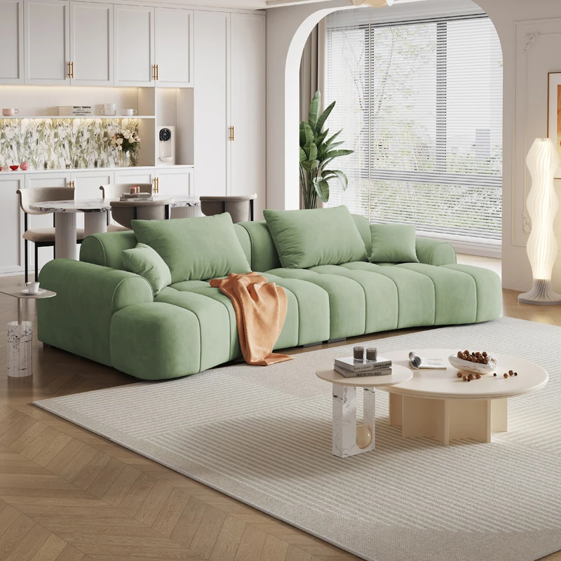 フレンチクリーム風のリビングルーム用ファブリックソファ!小型住宅にぴったりなベビーフランネル製、アーチ型のマシュマロクッション付き。ふわふわのデザインで、心地よい羽毛ソファ!あなたの部屋を優雅に彩ります。