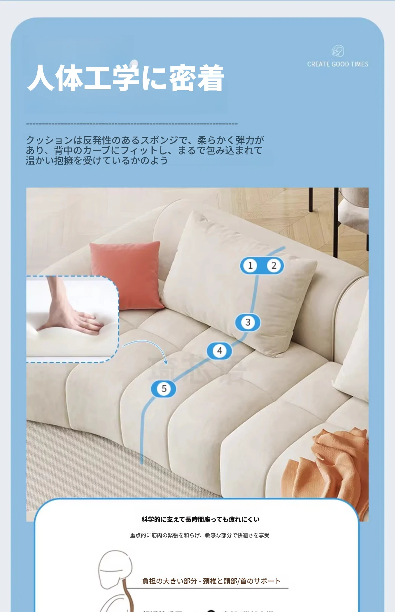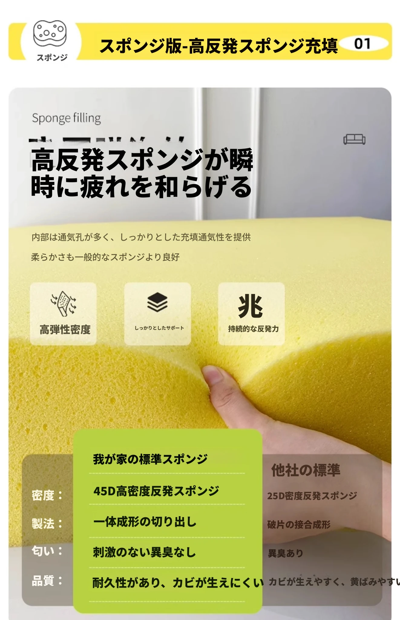 三人位2.2米【45D高密度リバウンドスポンジクッション】