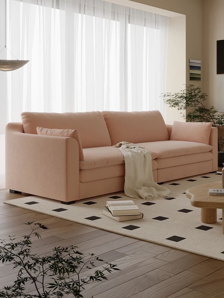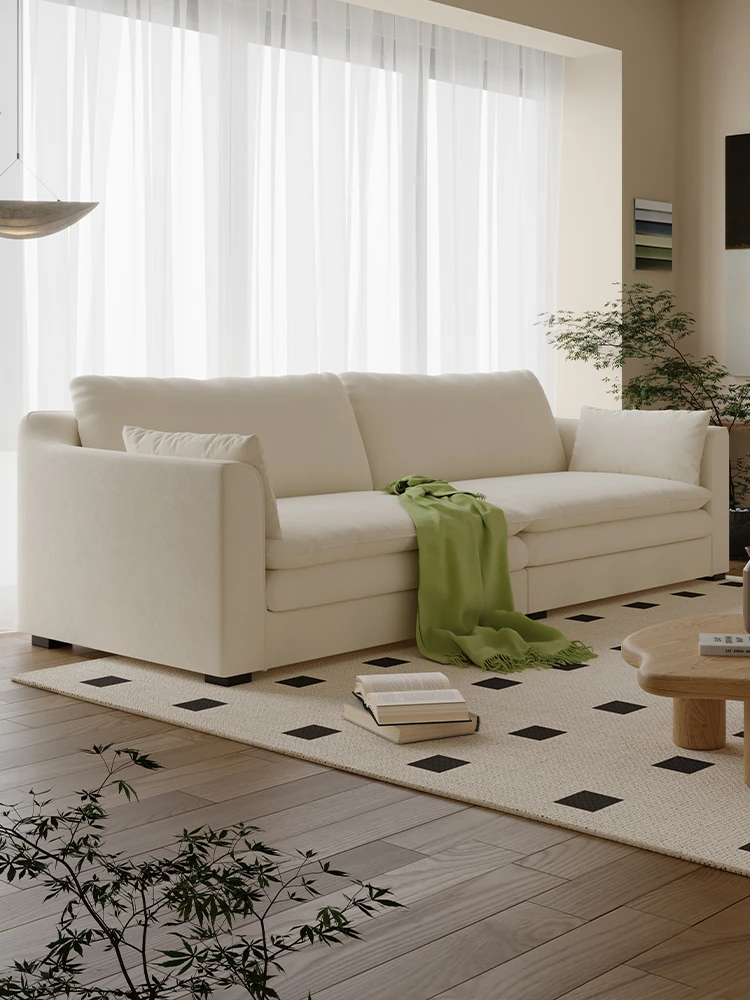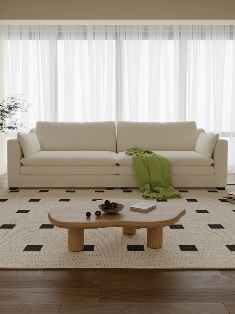 フランス風クリーミーな雲感ファブリック豆腐ブロックソファ - シンプルでスタイリッシュなリビングに最適!小型住宅にもぴったり、取り外し可能なカバーでお手入れも簡単!