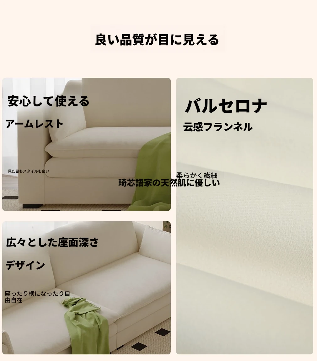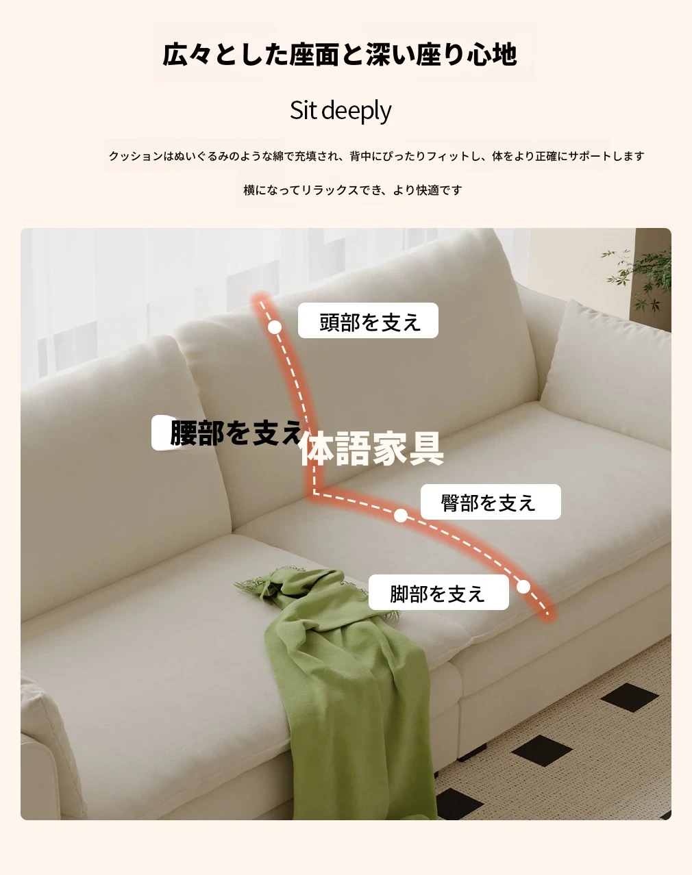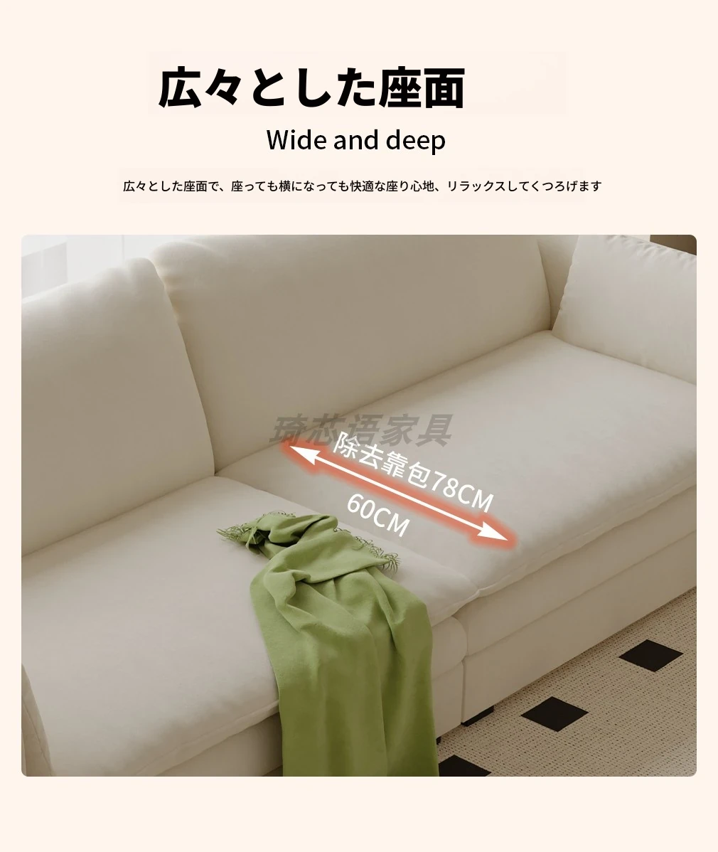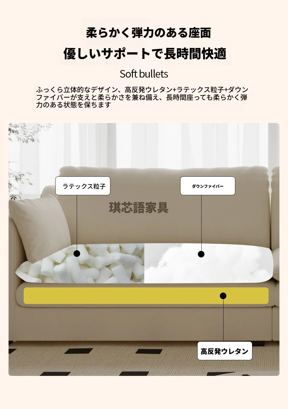 3人用2.1メートル【取り外し可能な洗濯デザイン+二重クッション】