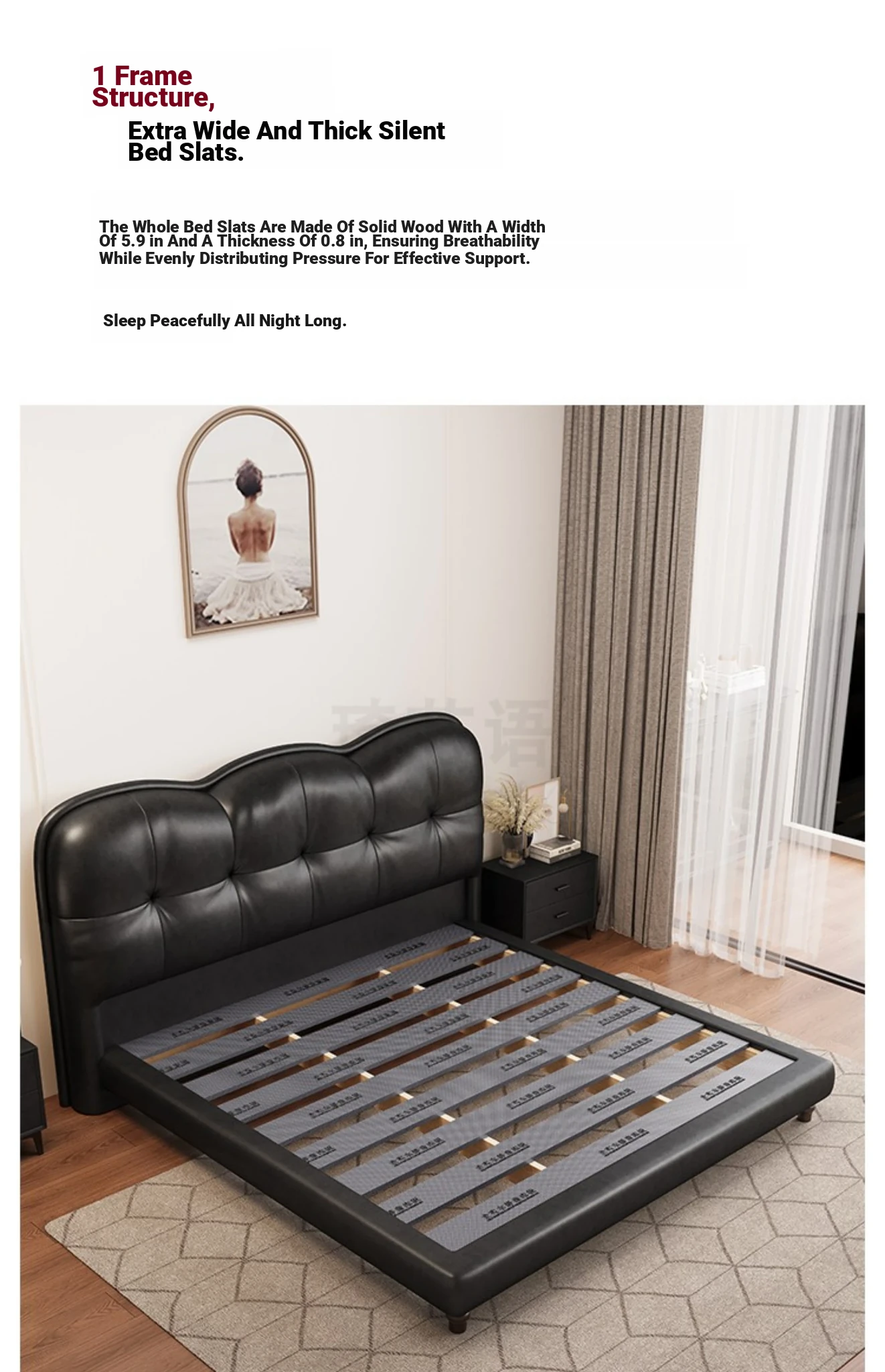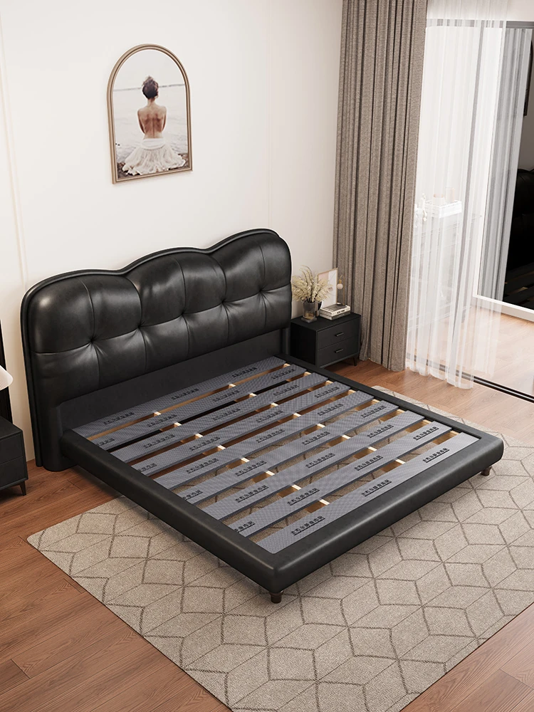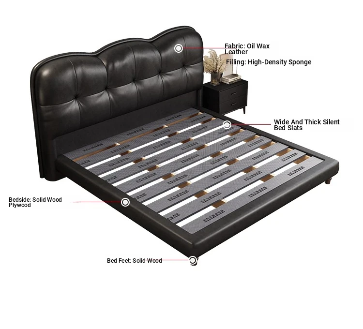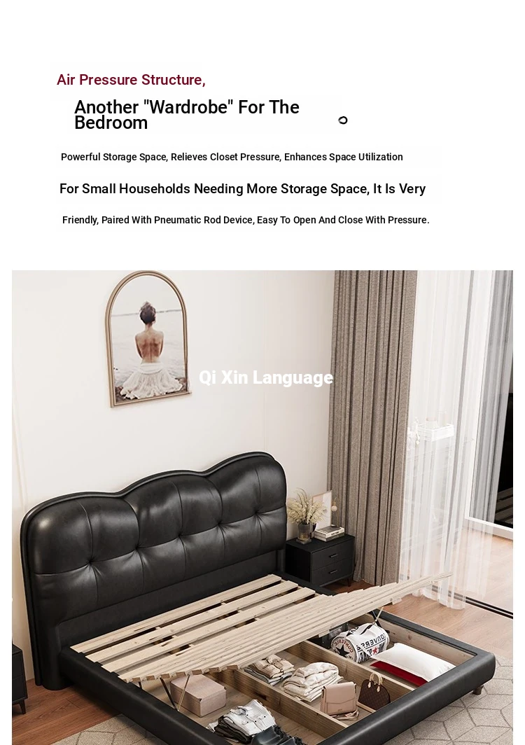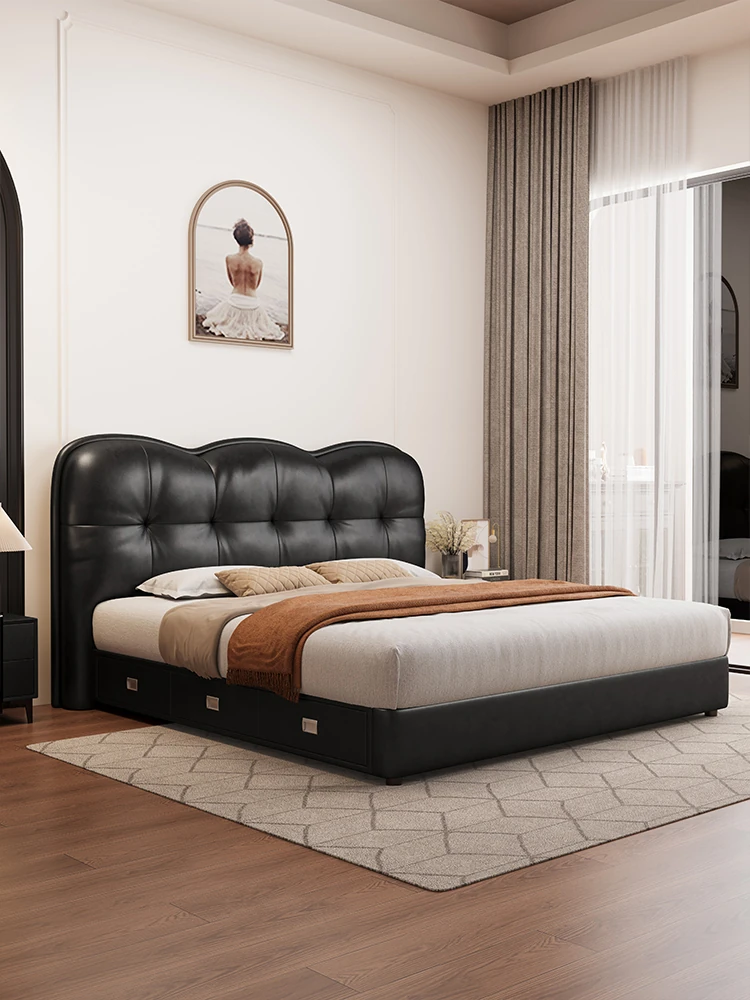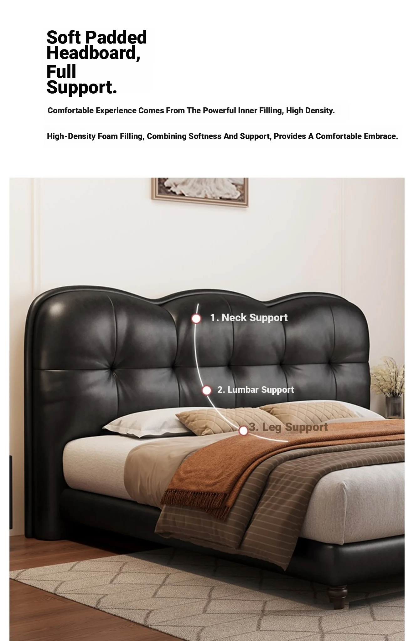 French Vintage Style Upholstered Double Bed with Gas Lift Storage - Elegant Waxed Leather Design for Master and Guest Bedrooms