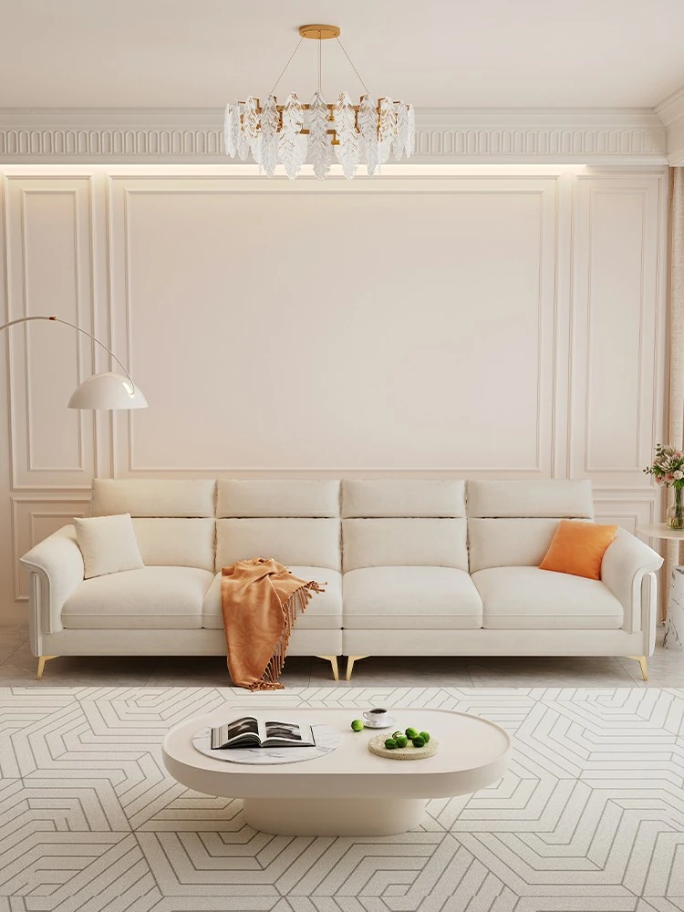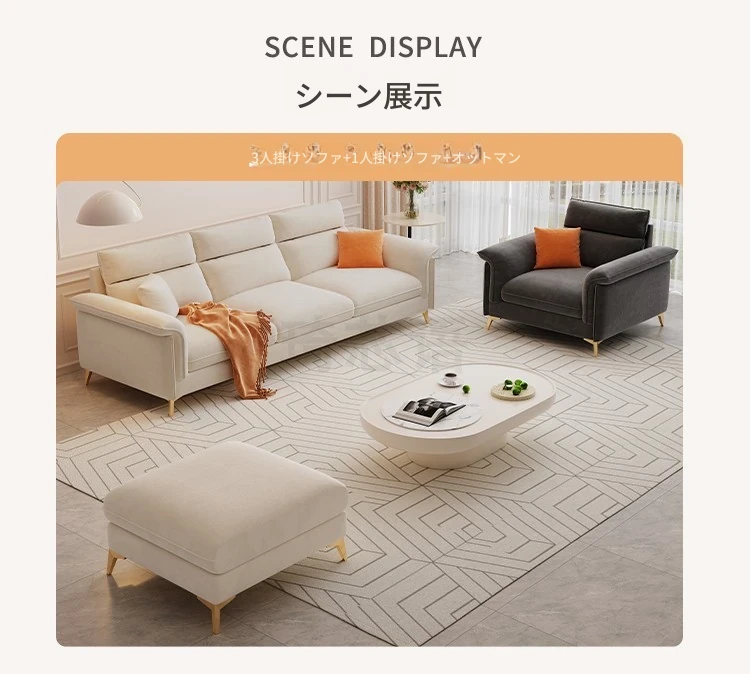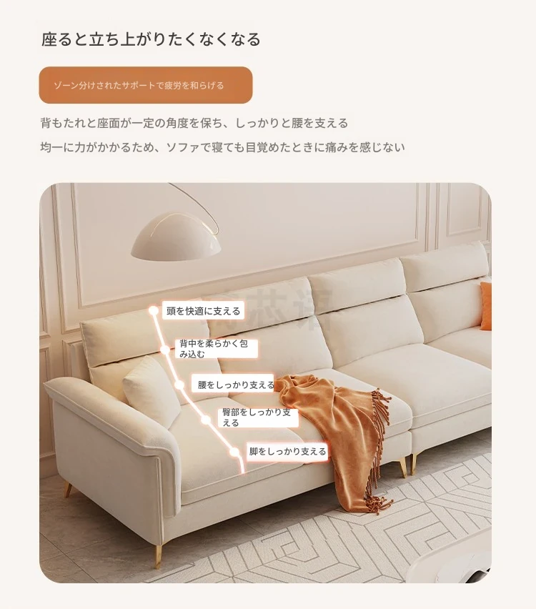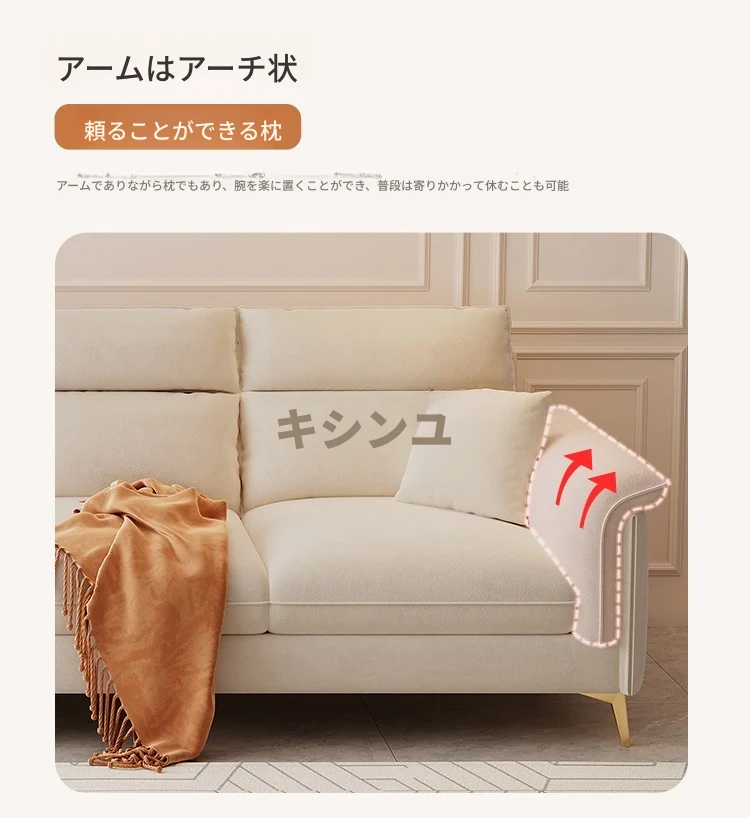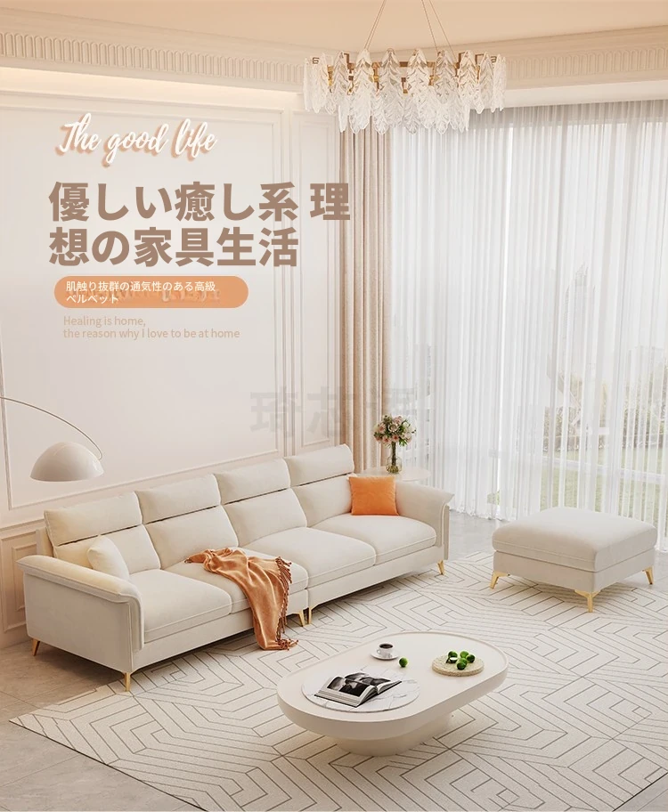 フレンチクリーム風高級ベルベットテクノロジー布製リビングソファー、猫の爪にも強い直排型、小型住宅に最適なモダンシンプルデザイン!おしゃれで快適な空間を演出します。