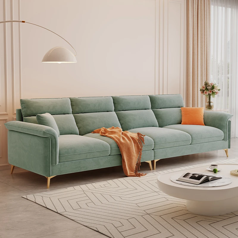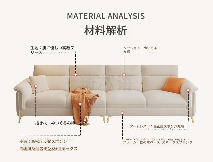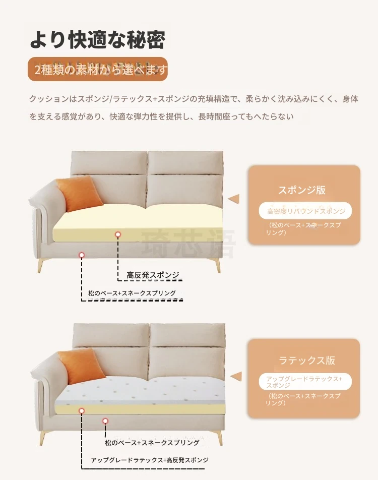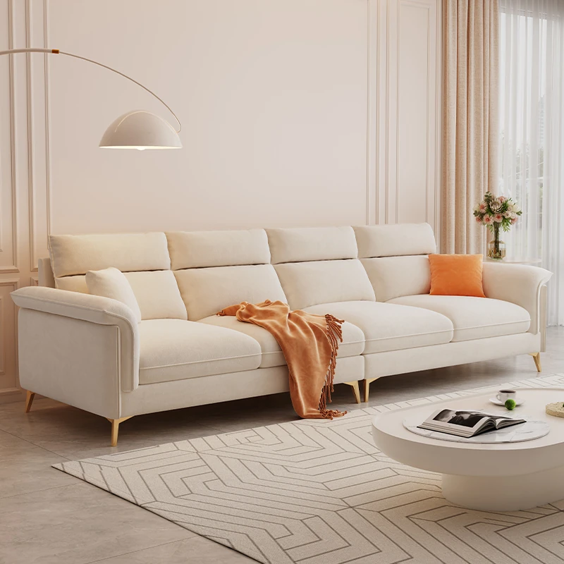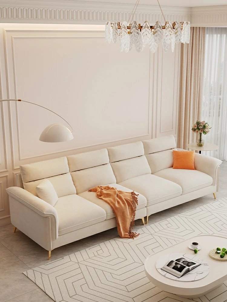 フレンチクリーム風高級ベルベットテクノロジー布製リビングソファー、猫の爪にも強い直排型、小型住宅に最適なモダンシンプルデザイン!おしゃれで快適な空間を演出します。
