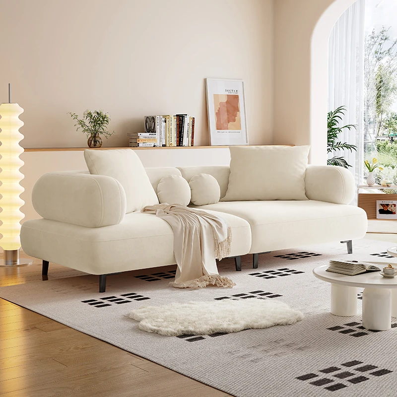 フレンチクリーム風ソフトベルベットリビングソファ、広々とした座面と深いクッション、防水・耐摩耗のモダンシンプルデザイン、2025年モデル。快適さとスタイルを両立した、あなたのリビングにぴったりの一品です!