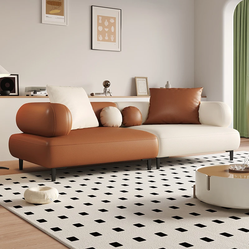 【イタリア製本革+ダウンクッション】ホワイト+マンゴーブラウン
