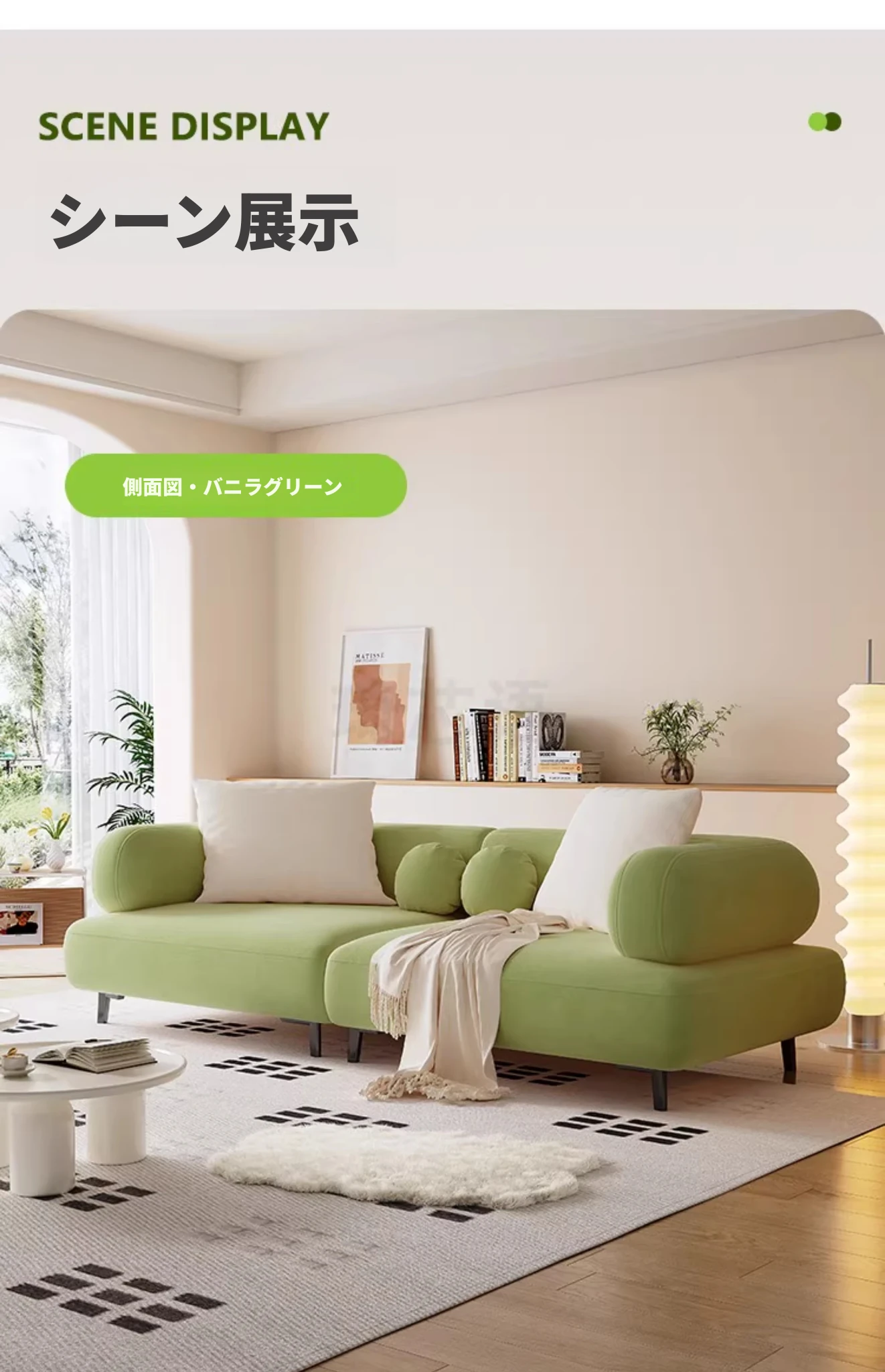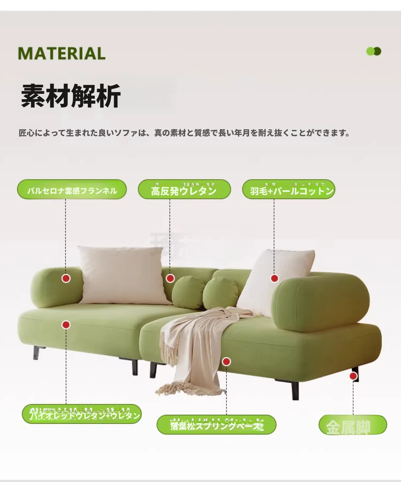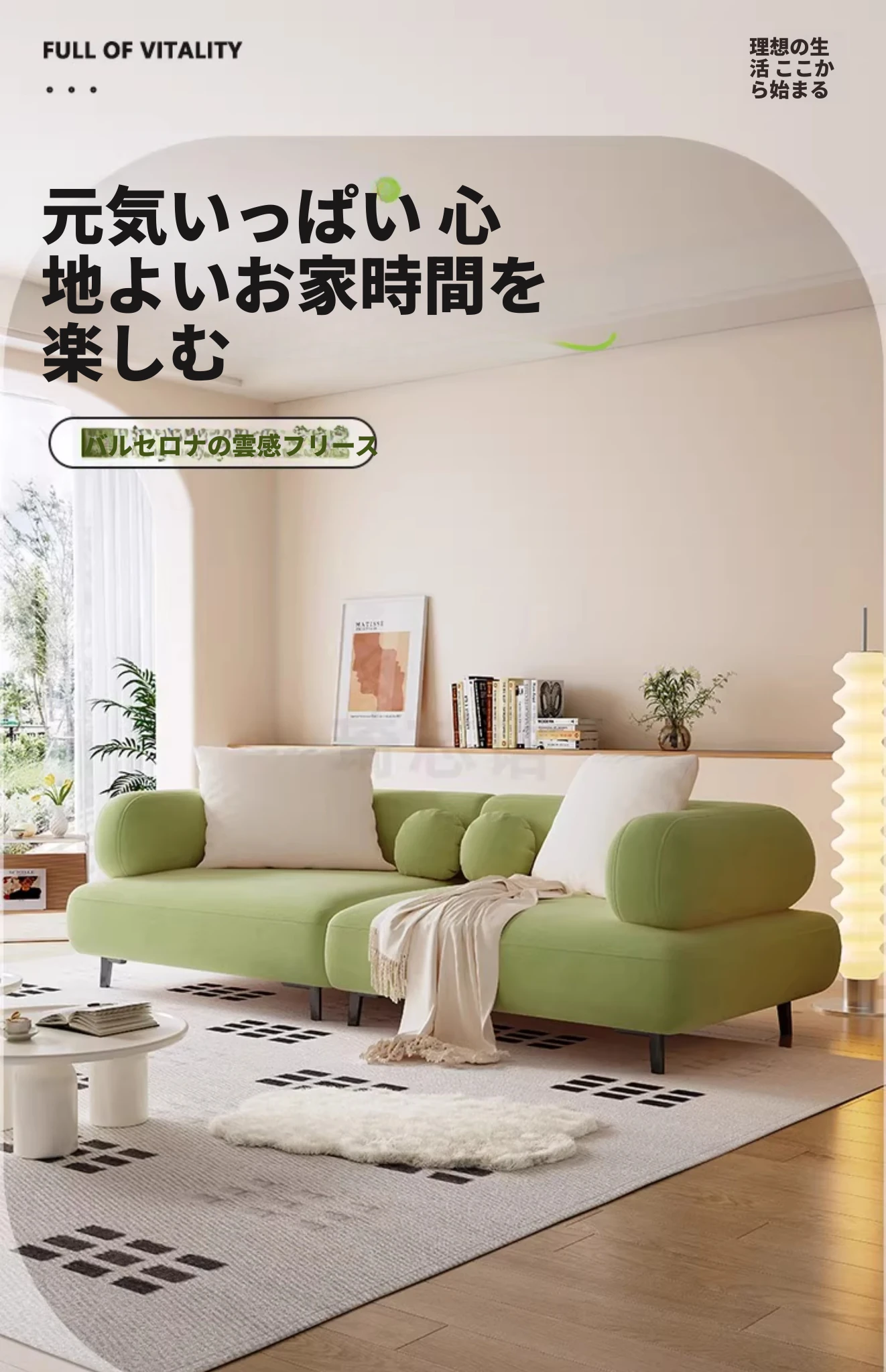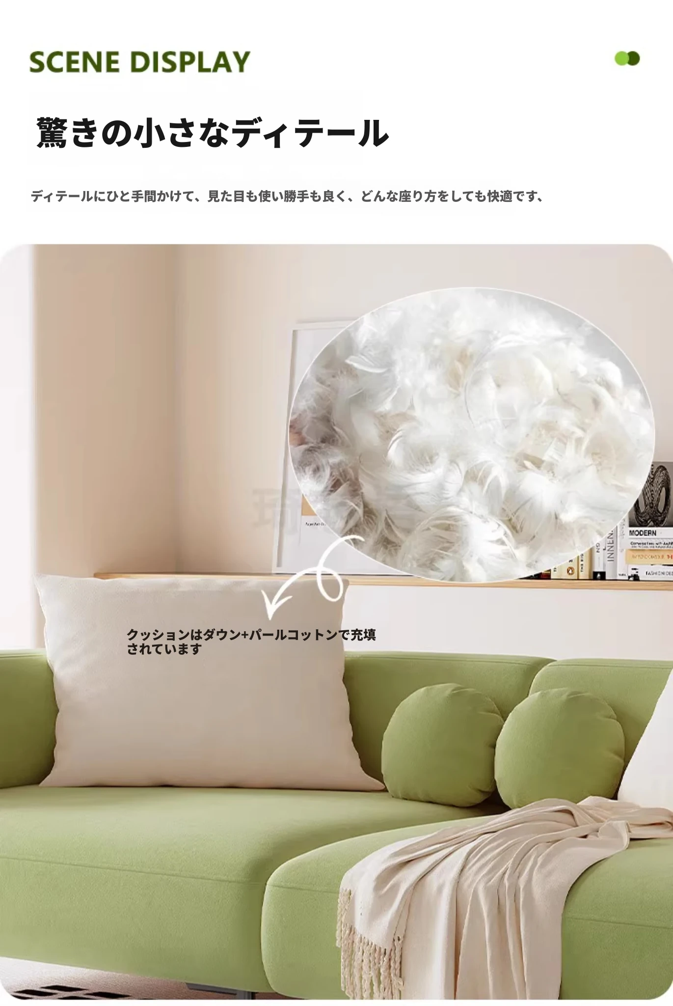 【バルセロナ雲感フリース+ダウンクッション】ホワイト+バニラグリーン